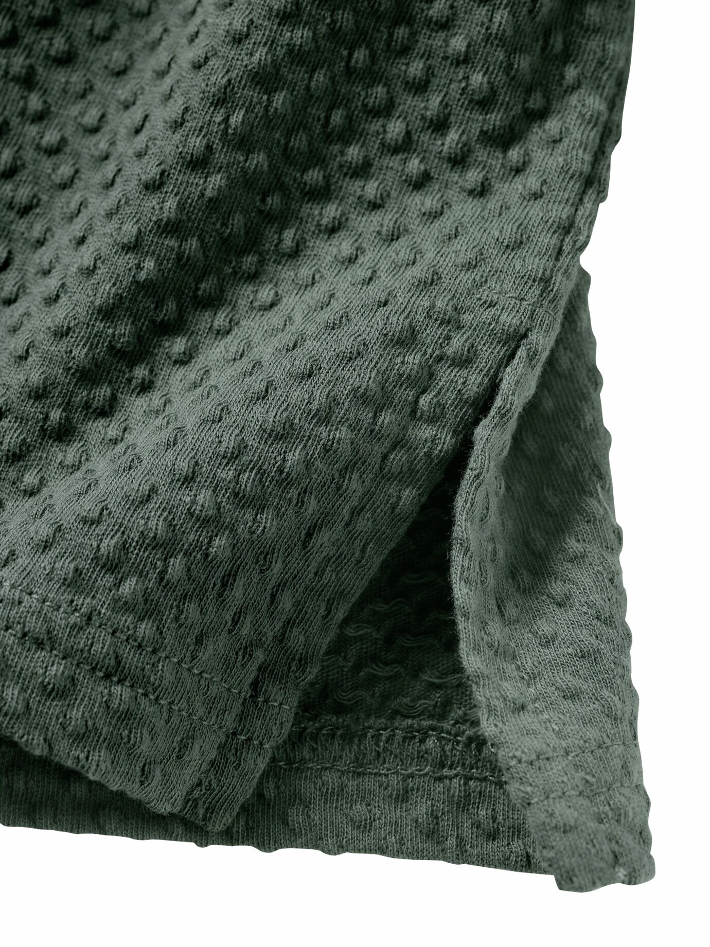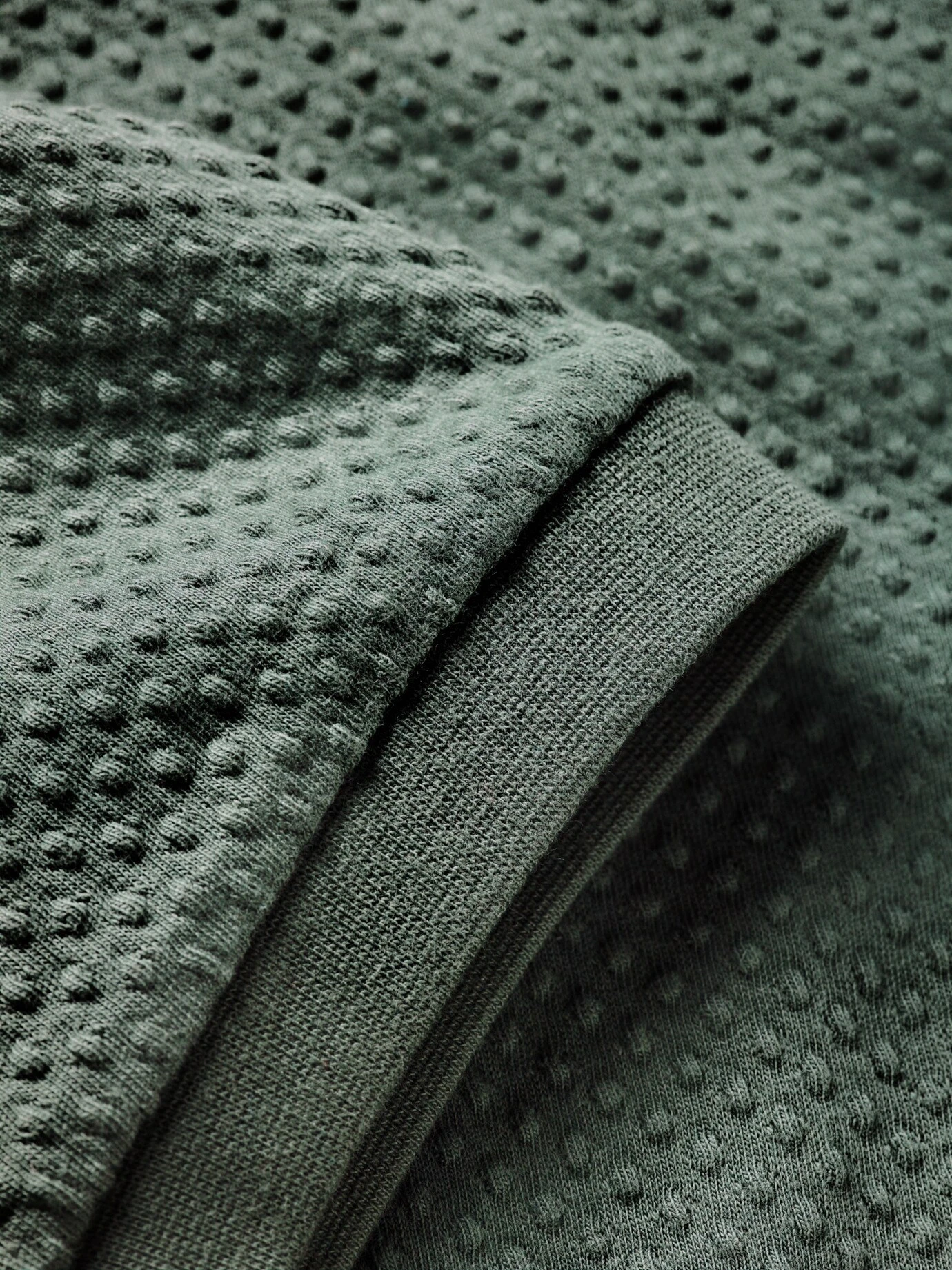 Fühlbare Tiefe. Punkt für Punkt reiht sich bei diesem Shirt nebeneinander. Verleiht dem Jersey mehr Erhabenheit und fühlt sich auf der Haut nicht nur gut an. Es isoliert Körperwärme und gibt sie bei Bedarf wieder ab. So wärmt das Shirt ein wenig mehr als vergleichbare, ist aber gleichzeitig atmungsaktiv, um Sie auch zu kühlen.