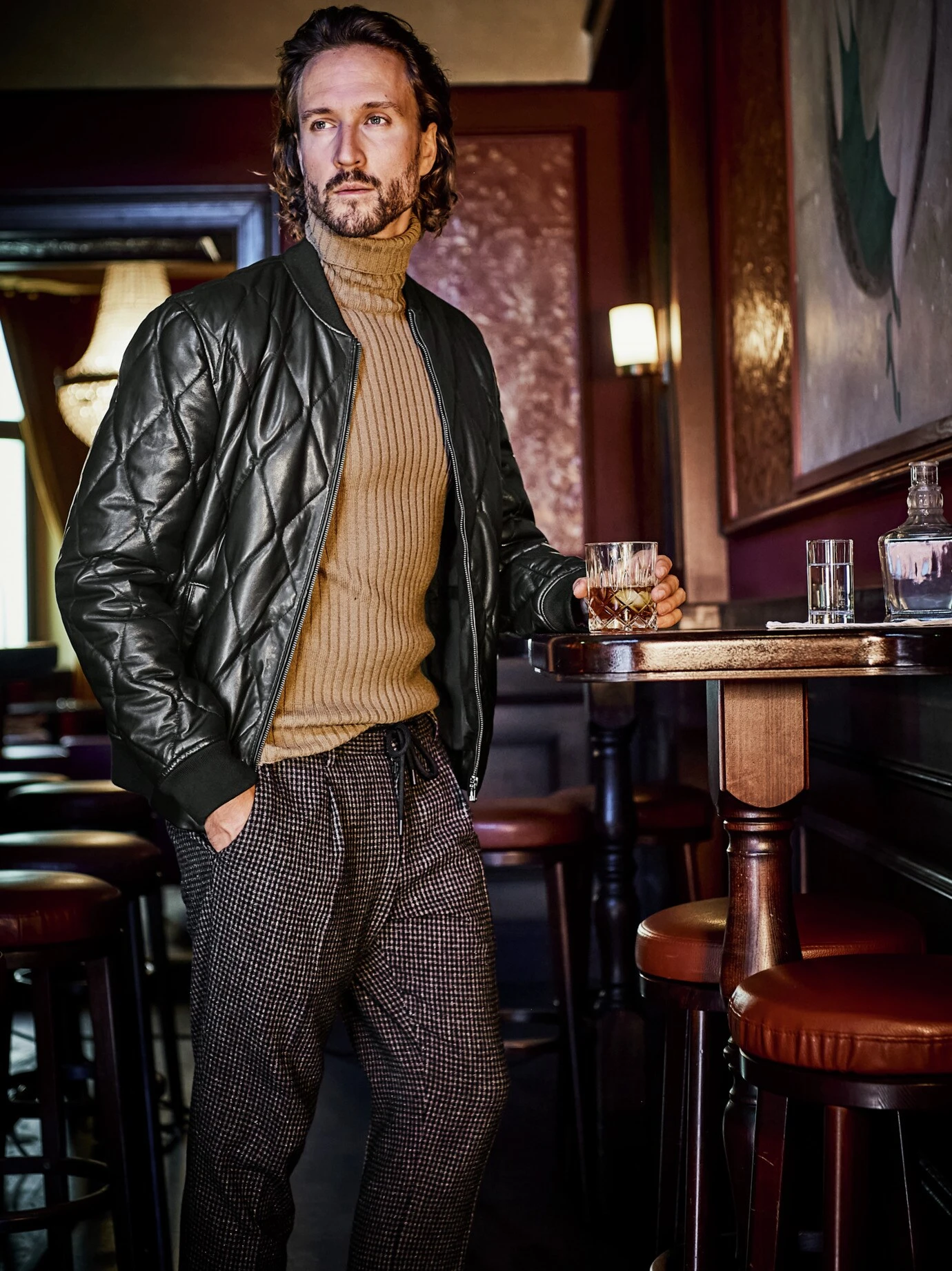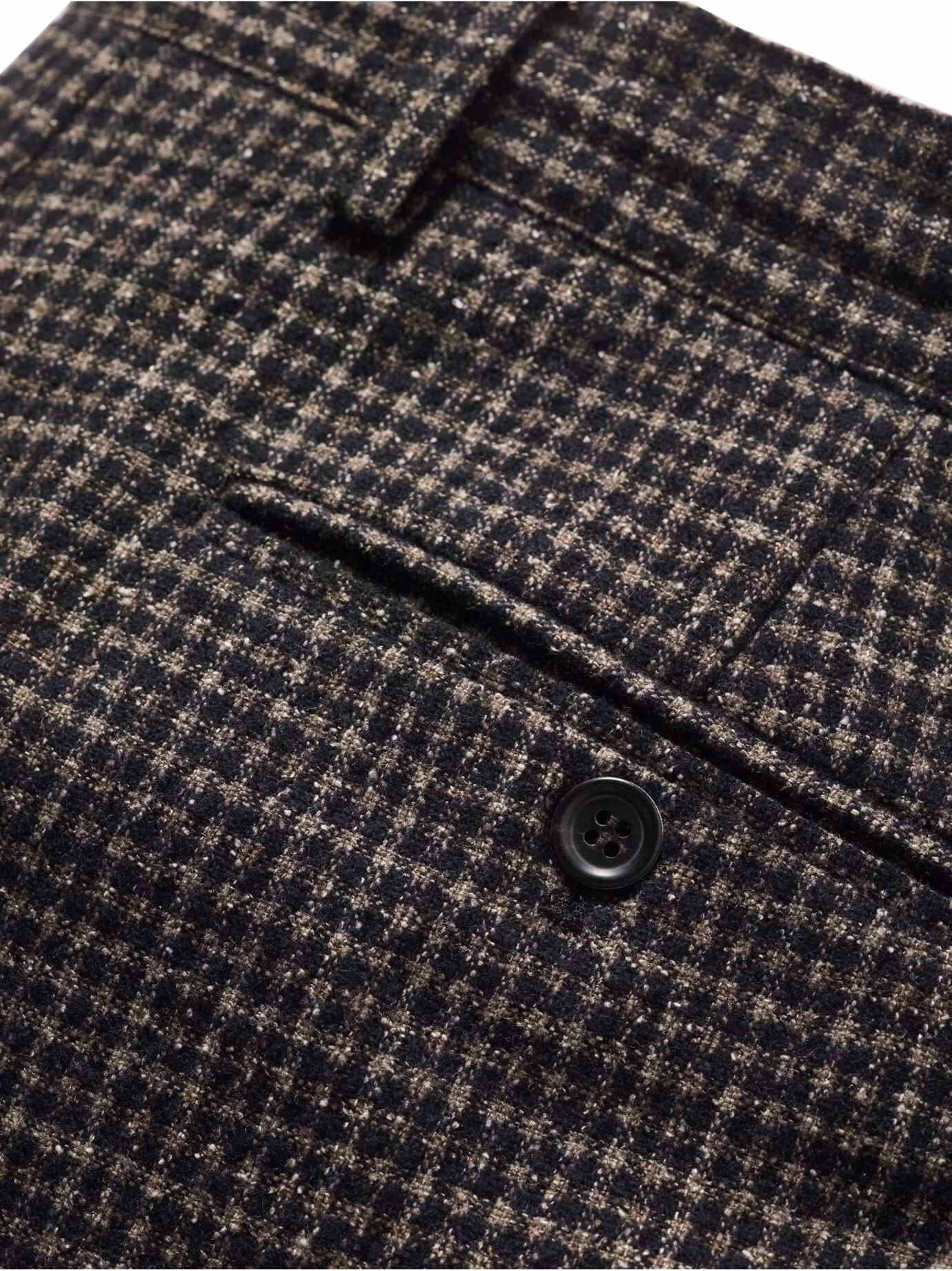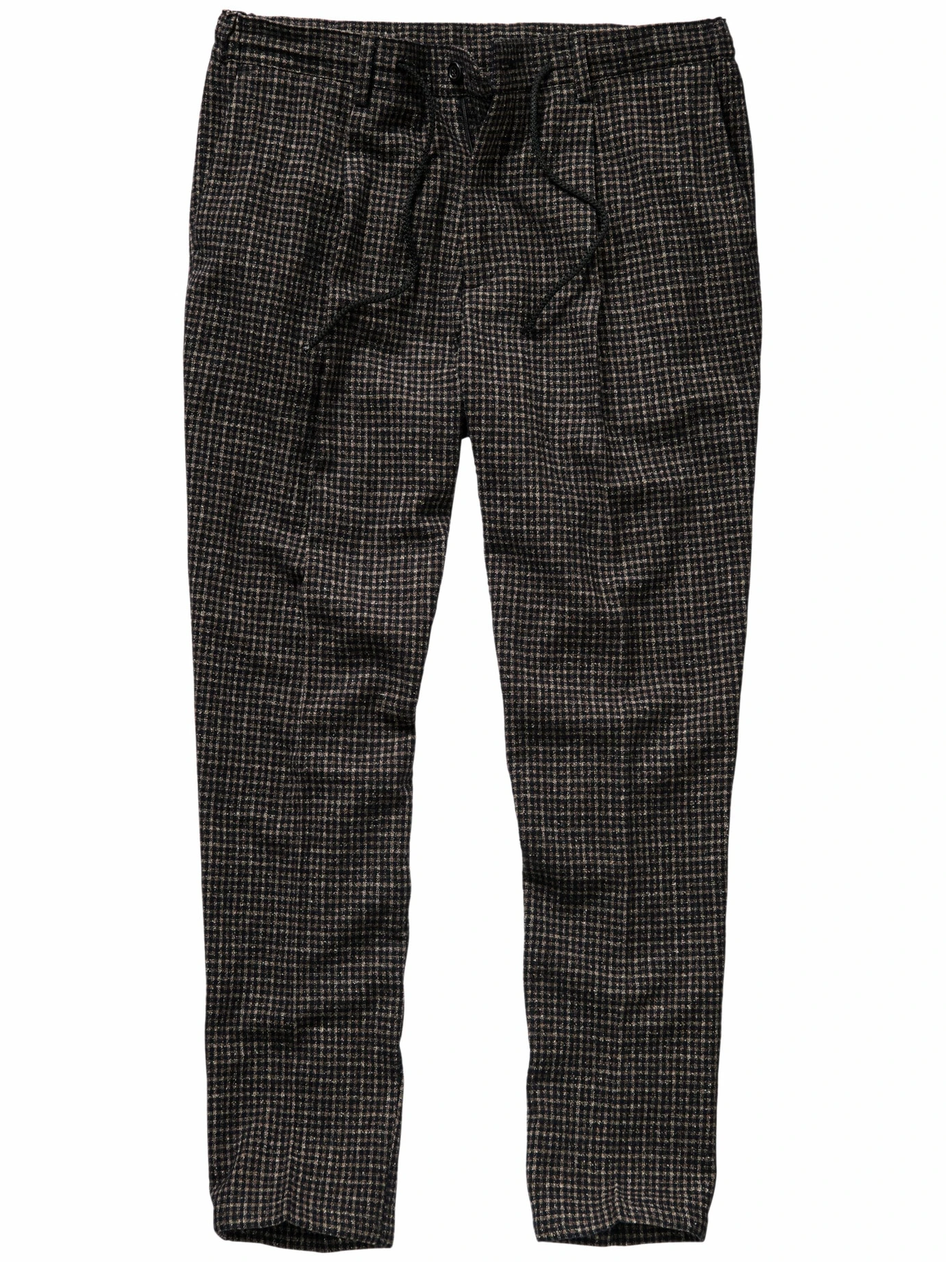 Modisch bewandert. Ja, es ist die italienische Luxusware, die diese Anzughose ausmacht. Der edle Wollstoff mit einem Schuss Seide macht sie so griffig und geschmeidig wie eine komfortable Jogginghose. Das zeitlose Vichykaro wird auf ein Bouclégarn übersetzt. Dazu passt der flexible Bund mit Tunnelzug, damit Sie ausdauernd in ihm sind. Am besten, klar, zum passenden Anzugsakko (Nr. 24-6736-2), aber auch klasse zur Lederjacke.