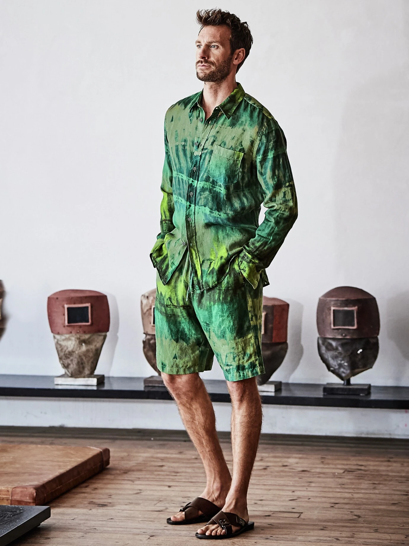 Wenn Leinen knallt, stammt es von 120 % Lino. Die Jungs und Mädels aus Bologna veredeln Leinen in ungeahnter Technik, ohne es zu verleugnen. Unfassbar weich, der italienische Leinenstoff wird mehrfach gebatikt und macht jede Shorts zum exklusiven Unikat. Idealer Hitzekompensator: kühlt automatisch die Haut, überschüssige Hitzeperlen saugt er einfach auf und gibt sie an die Umgebung ab. Mit austarierter Passform, die gut anliegt und, wie es sich gehört, nirgends kneift. Am coolsten zum passenden Hemd (Nr. 15-4378-8), sonst zu unifarbenen Shirts.