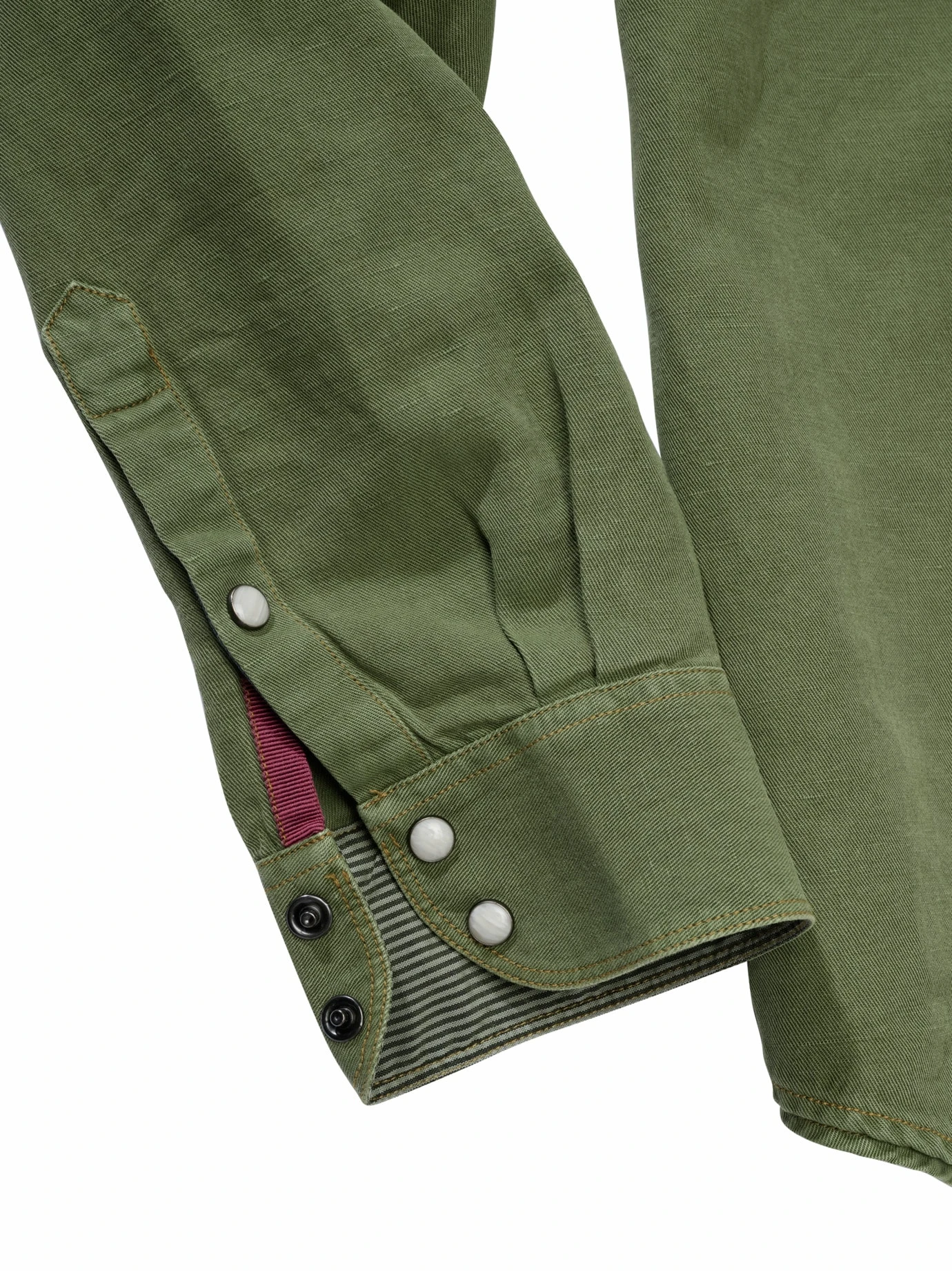 Looking for adventure. In whatever comes our way. Im wilden Westen gibt’s was Neues. Die Jeanshemd-Alternative kommt in Grün und mit einer luftigen Baumwoll-Leinen-Mischung um die Ecke. Ist genauso lässig wie Denim, ab 24 Grad einfach angenehmer auf der Haut. Mit Schulterpasse, hellen Druckknöpfen und Ziernähten zieht es den Cowboyhut vor dem blauen Klassiker. Für den schon-lange-bei-Sonne-im Sattel-Look wurde das Hemd ordentlich vorgewaschen. Geht ins Detail: der Streifenstoff an der unteren Knopfleiste, im Kragen und der Manschette. Maximal casual kombinieren, Jeans sind naheliegend.