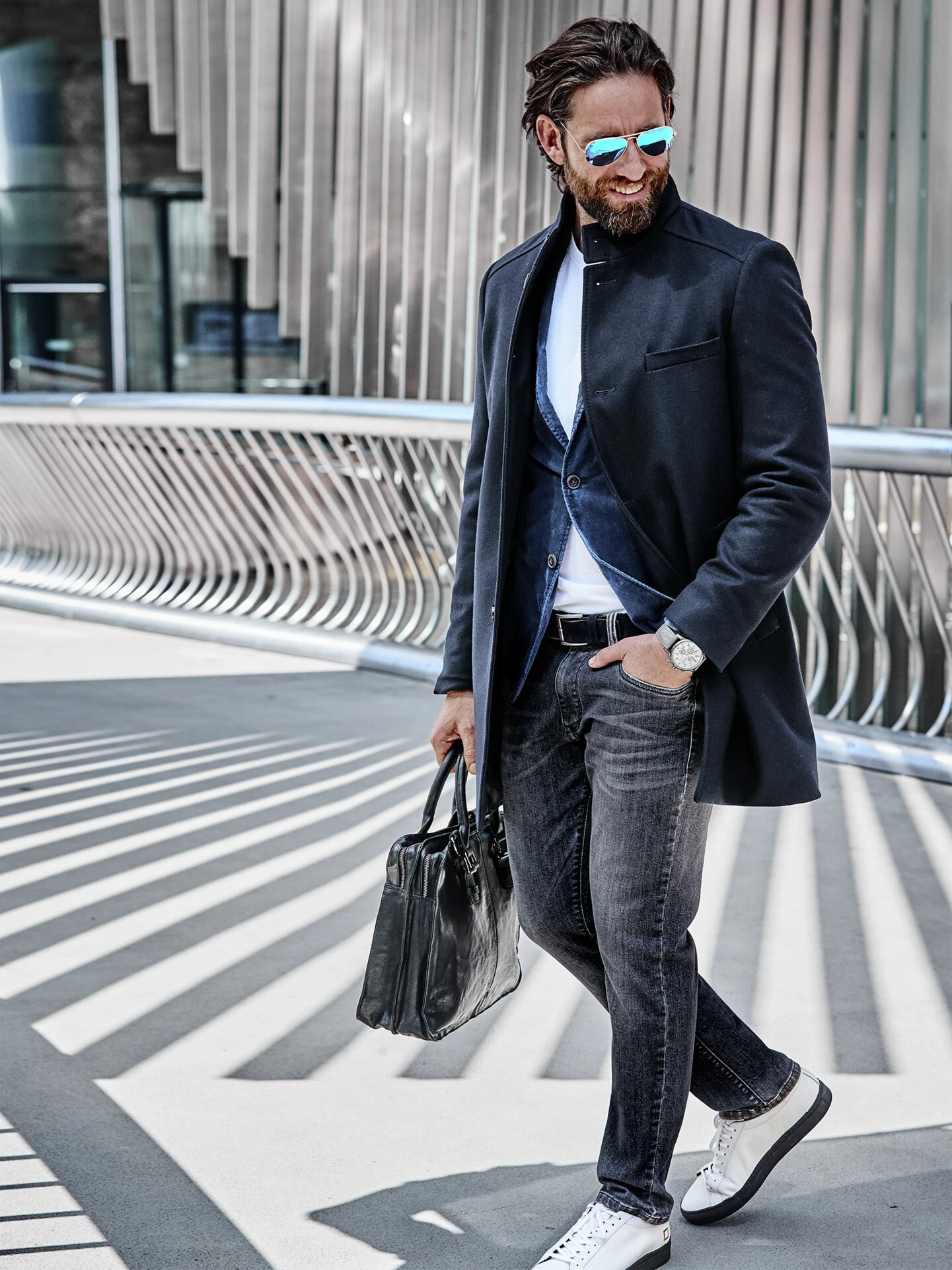 Sitzt an Fels und Po. Die Boulder-Jeans ist dank ihrer besonderen Verwebung des Denim und des Anteils Elasthan besonders elastisch. 4 % T400® machen sie darüber hinaus robust und bringen die Jeans immer wieder in die Ausgangsform zurück. Der Schnitt ist ganz klar Slim und trotzdem sehr bequem. Die Waschung ist ein wenig sandig, damit die Sandfelsen, auf denen Sie bouldern, keine sichtbaren Spuren hinterlassen. Schön zu weißem T-Shirt und nach dem Absprung vom Felsen schön zu weißem Hemd (bloß kein cremeweißes!). Schwarzes Sakko oder schwarze Kapuzenjacke gehen auch immer. Modische Fußweite, die auch gekrempelt gut aussieht.