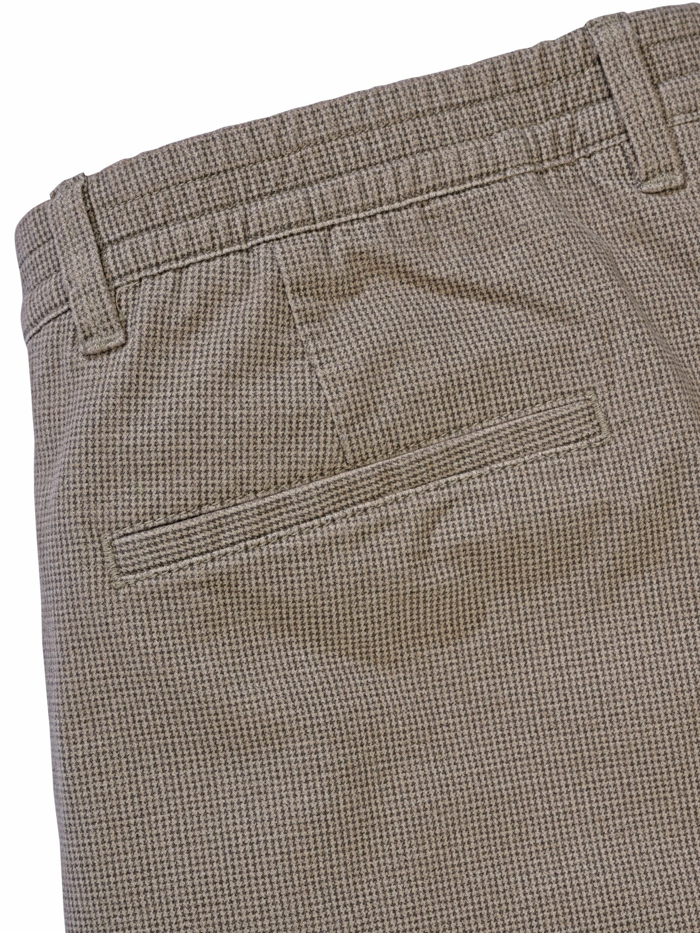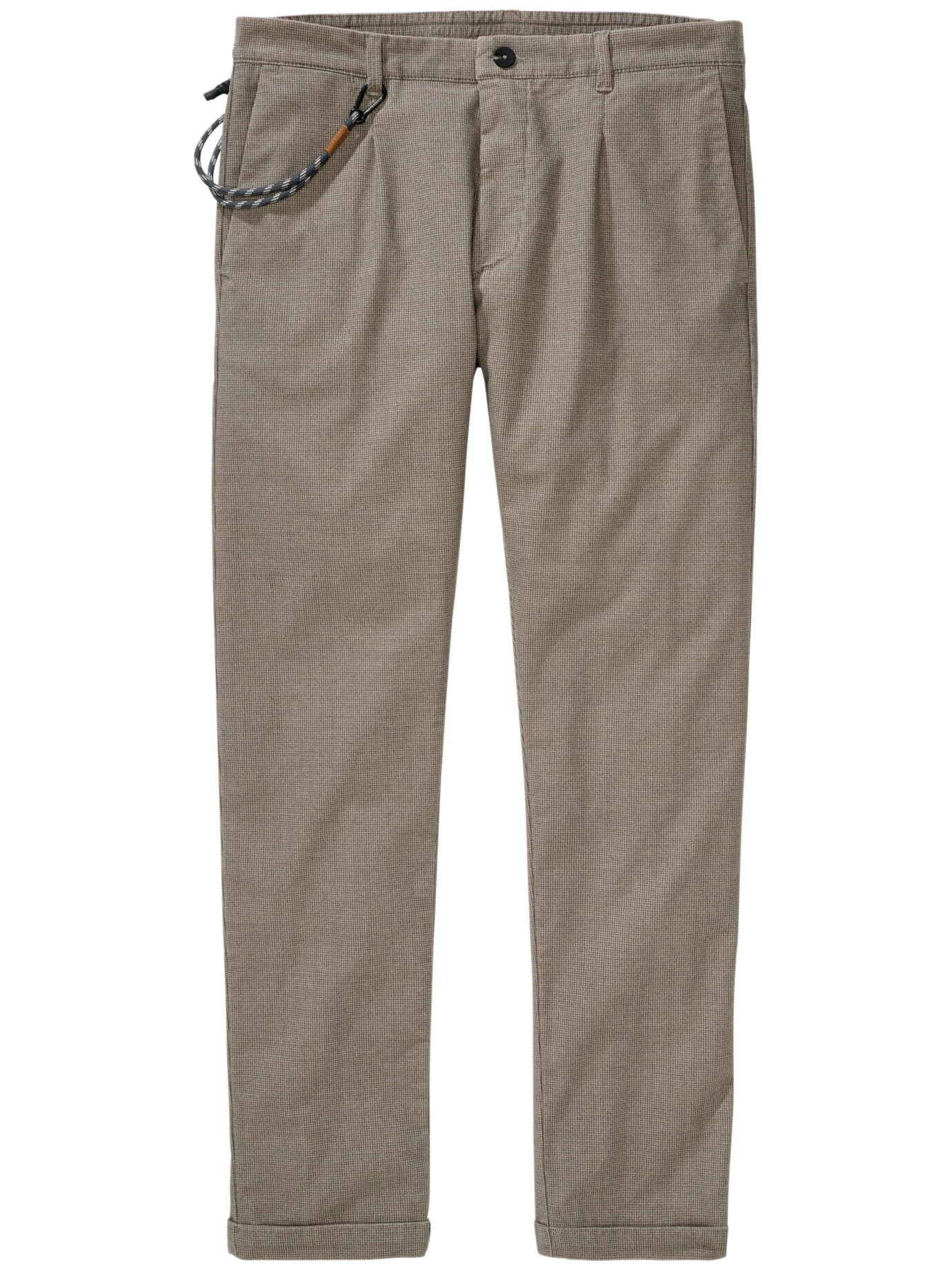 Verarbeitung: Bundfalten, elastischer Bund hinten. Abnehmbares Schlüsselband. Zwei französische Taschen vorn, zwei Paspeltaschen hinten. Slim Tapered (Fußweite: 36 cm).
