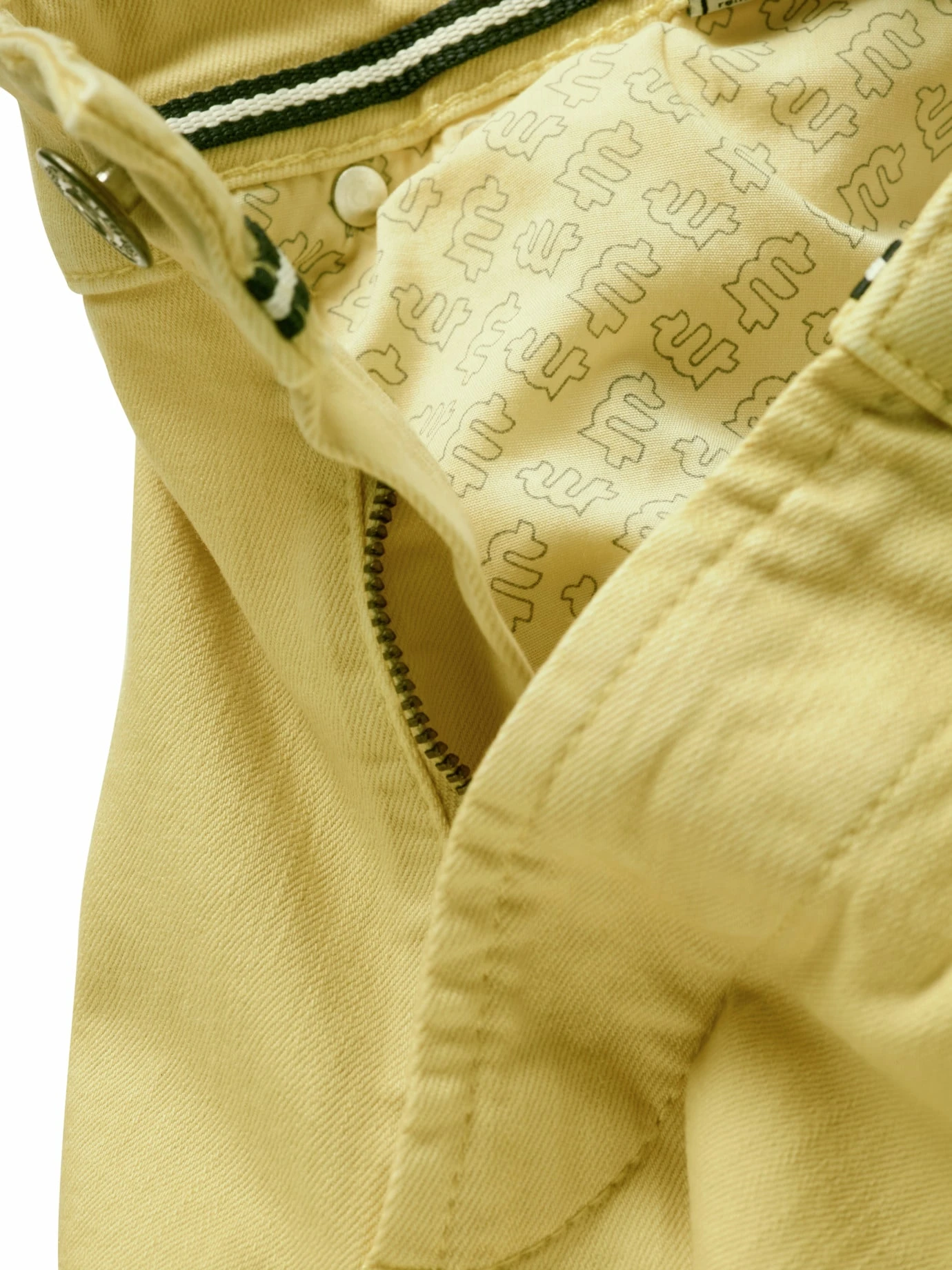 Fehlt nur noch die einsame Insel. Hätte die Robinson mal gehabt: bequem, verzeihend und leicht. Die Besonderheit liegt im sogenannten „Slub-in-fabric“, also im leicht unregelmäßigen Stoff, der durch seine Knötchen kerniger und auch nach langem Tragen frisch wirkt (ruhig im Urlaub einplanen). Liegt gut an, ist griffig und auch im Schneidersitz noch bequem. Endet eine Handbreit überm Knie. Entweder dann sportlich zu Shirt und Sneakern oder smart zu Hemd samt Slippern.