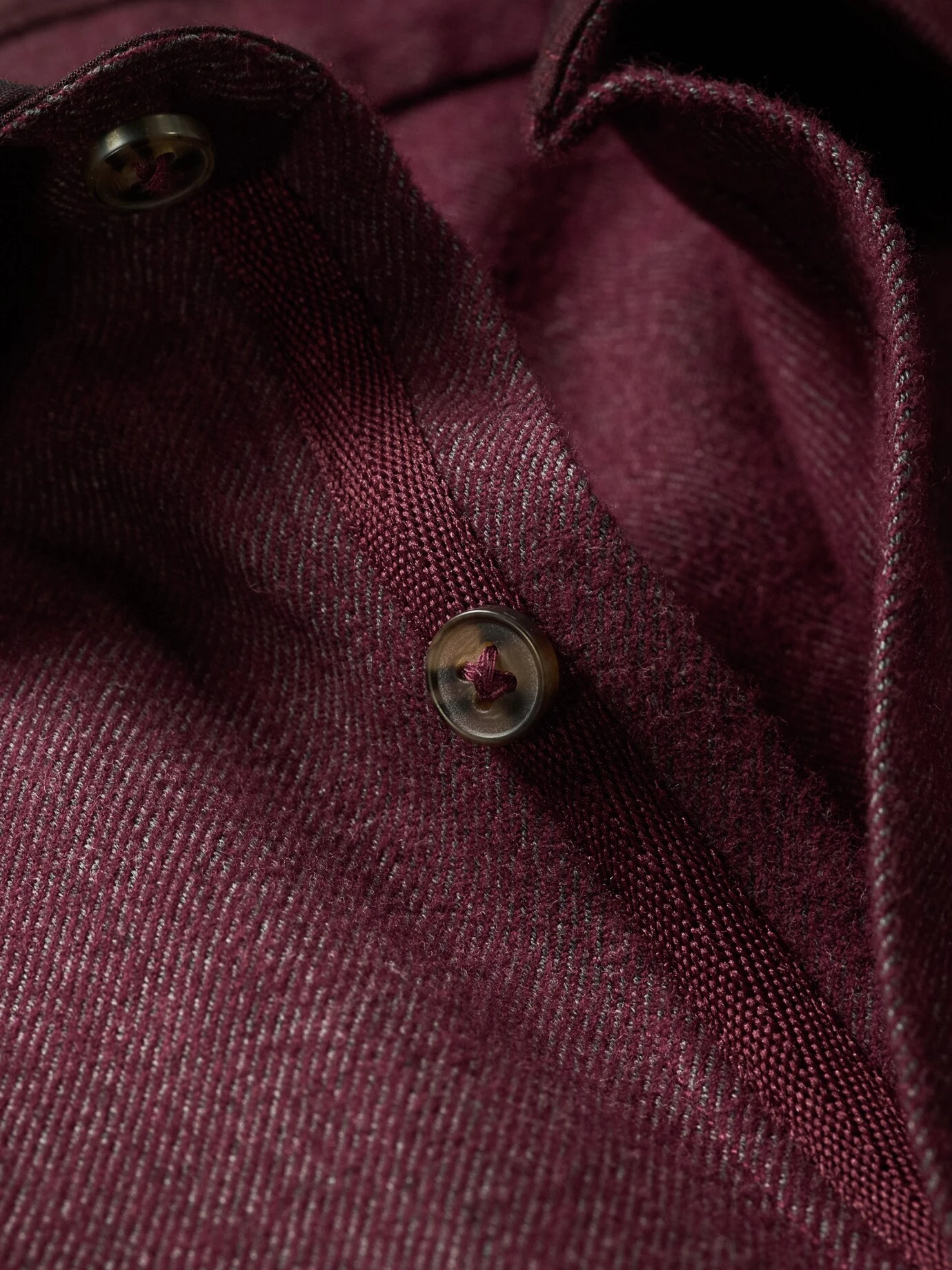Das Flanellhemd gehört (wieder) zur Grundausstattung der Männergarderobe. Cool und lässig und so entspannt-gemütlich, wie Sie es kennen. Gearbeitet aus Baumwoll-Twill, mit kleinen Details, wie farblich abgestimmtem Kontraststoff an Kragensteg und Manschetteninnerem. Ein Flanellhemd in dieser Farbe ist selten. Noch! Denn sie bringt Abwechslung in die sonst eher dunklen Stoffe. Perfekt zu Dark Denim.