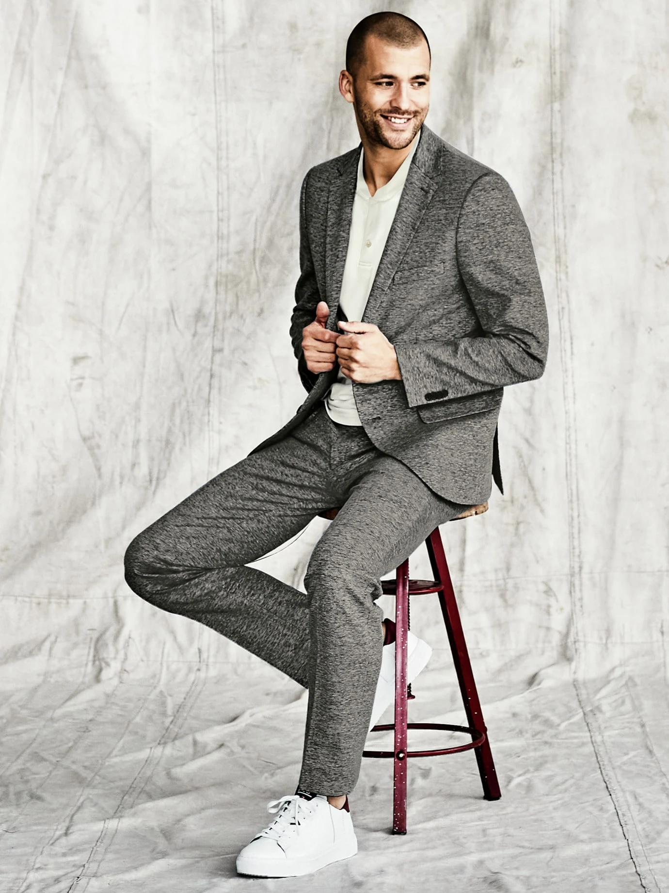 Für Tage auf dem Sommersitz. Die schönsten Tage des Jahres verbrachte unser Gründervater Ernst Mey in seiner Villa Sachsen bei Bingen am Rhein – seine zeitgenössischen Aufnahmen brachten uns auf die Idee zu dieser Anzughose. Zum entspannten Flanieren aus bequemem italienischen Jersey, der Leinenanteil kommt heißen Tagen entgegen, selbst beim Empfang von Gästen sitzt die Hose einwandfrei (knitterarm). Ernst hätte dazu das passende Anzugsakko (Nr. 24-6812-3) gewählt, im Hier und Jetzt auch schön zum Polo.