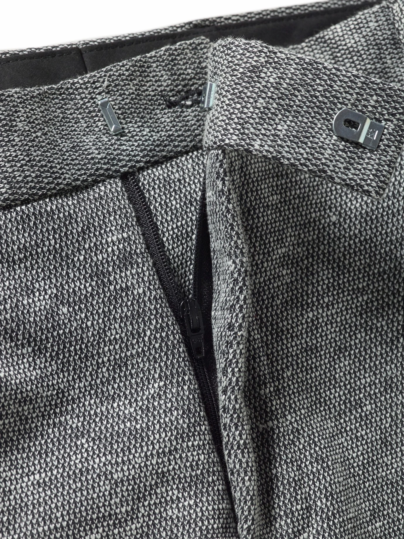 Verarbeitung: Hose mit französischen Taschen vorne, knöpfbare Gesäßtaschen. Der eingenähte QR-Code führt auf den Ernst Mey-Podcast. Slim Fit.