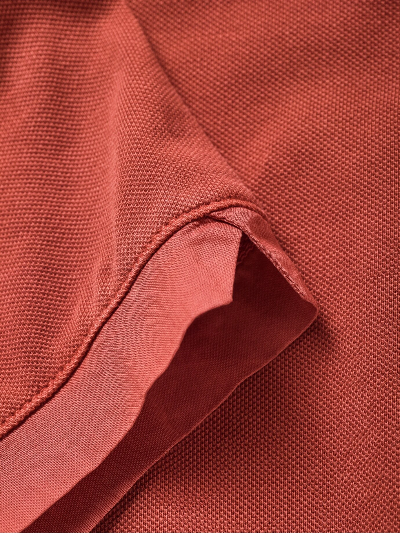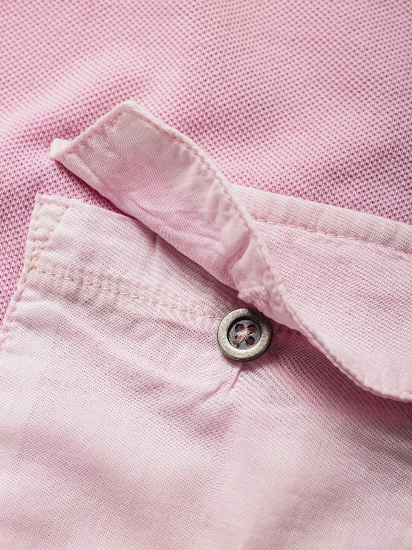Verkörpert Entschlossenheit. Hierin steckt einer, der aufbricht, erforscht, entdeckt. Für den Forscher das perfekte Polo – es lässt Bewegung zu, nimmt Feuchtigkeit auf und klebt nicht am Körper. Im Ganzen ist der leichte Jersey gewaschen, bis er farblich erscheint, als seien Sie schon häufiger durchs Dickicht gestreift – interessant wirkt’s, indem Brusttasche und Kragen festen Stoff tragen.