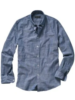 Wird immer besser. Charakterlich ist es auf der Spur eines robusten Jeanshemdes, es trägt sich aber deutlich leichter. Gemacht ist das Hemd dafür aus einem sanft vorgewaschenen Baumwoll-Chambray, der sich an warmen Tagen angenehm trägt. Durch die unterschiedlichen Farben in Kett- und Schussfaden entsteht der leicht changierende Ton. Wird mit dem Tragen noch schöner, dazu passt, klar, eine Jeans, aber auch jede Chino.