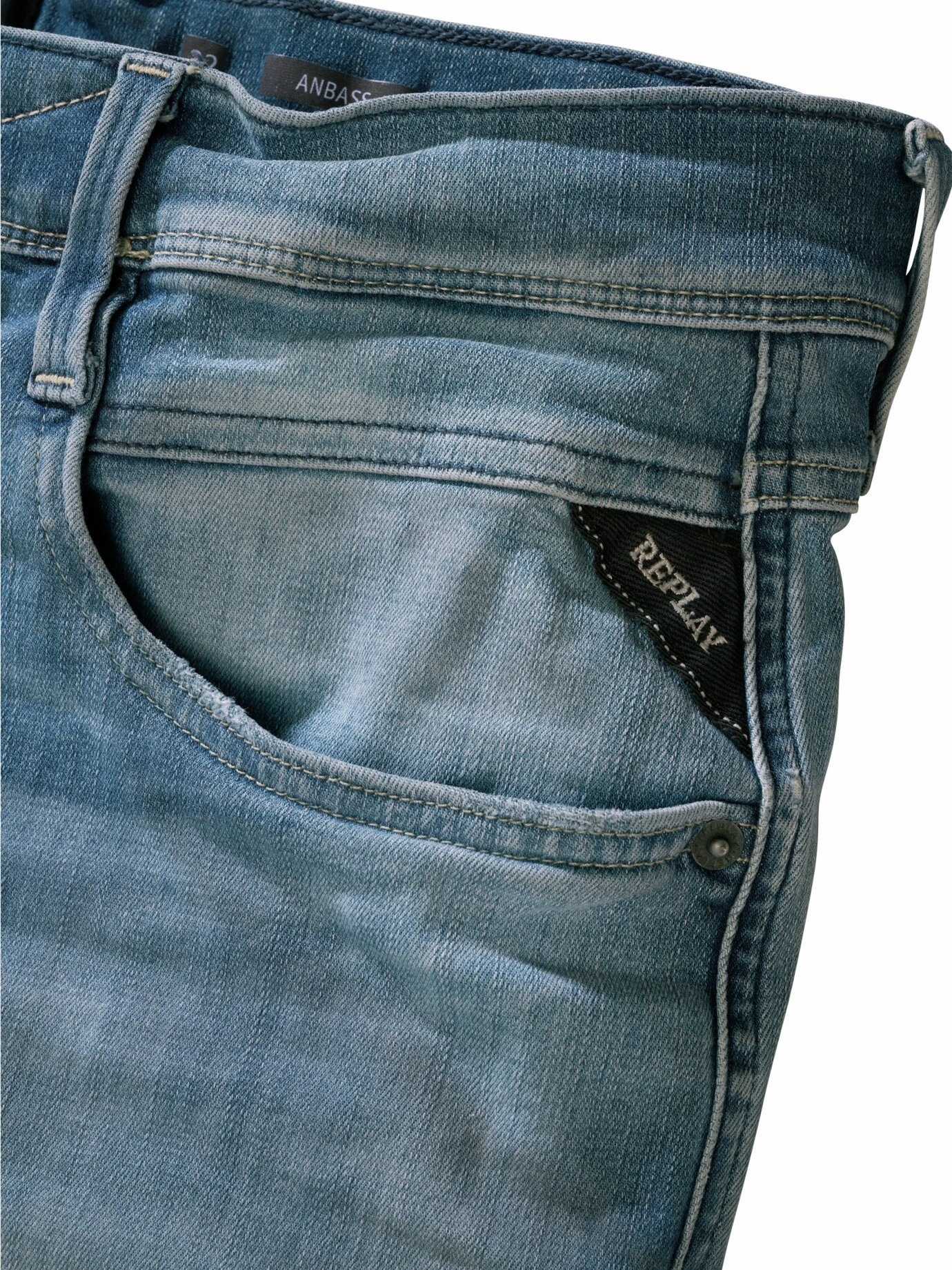 Sorgfältig durchdacht bis in die letzte Faser. Die Denim-Spezialisten von Replay haben den leichten 10-oz-Denim genau so viel vorgewaschen, dass er eingelebt, aber nicht abgeranzt aussieht. Der Polyesteranteil und der Schuss Elasthan sind exakt berechnet, um der Jeans die nötige Stretchpower für Fahrrad-Sprints und Tretboot-Touren mitzugeben. Die Jeans wird zum Bein hin schmaler, sie sitzt knackig ohne einzuengen.