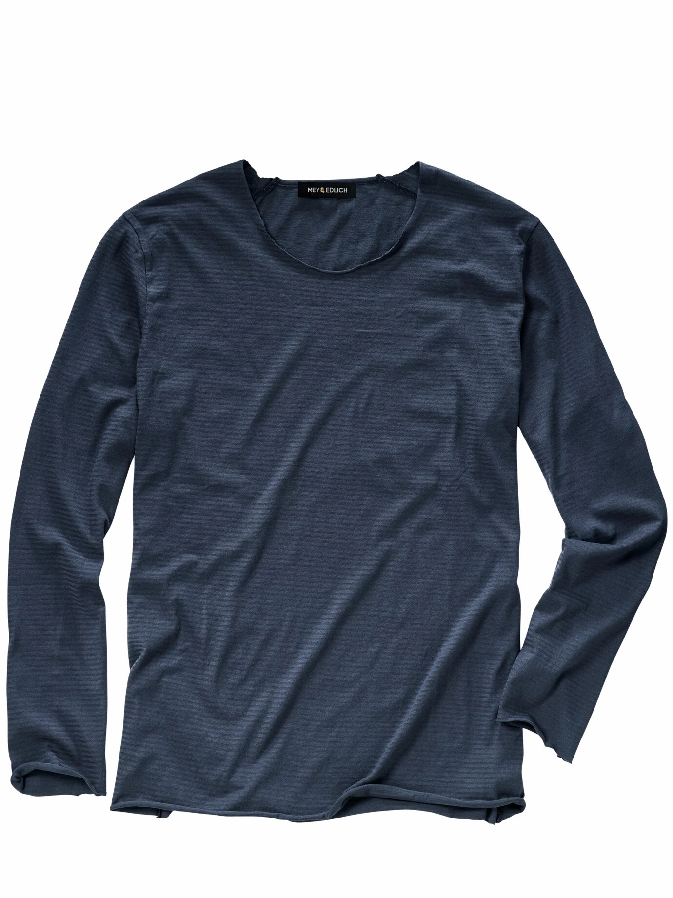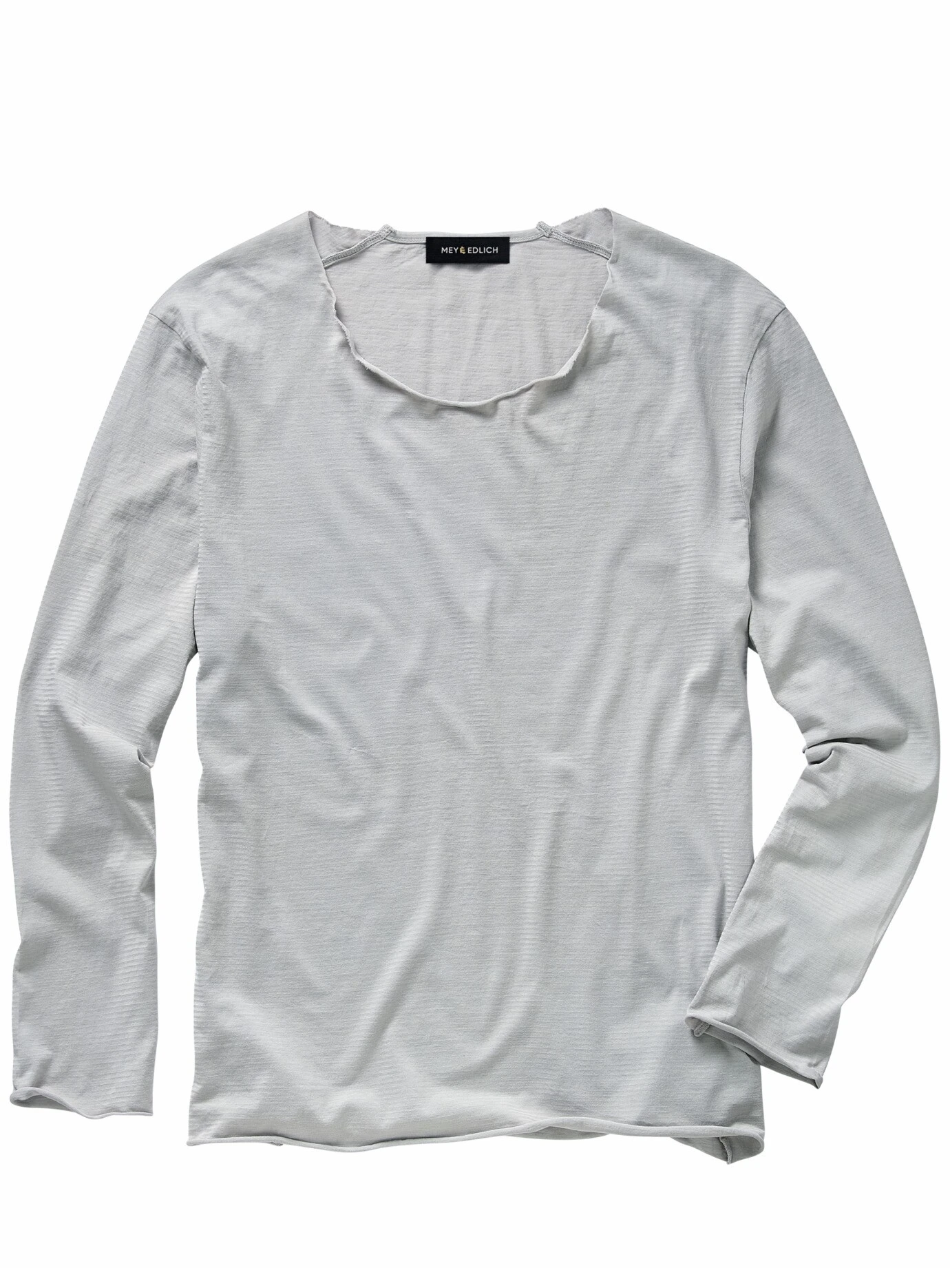 Wenn’s ohne Chichi auskommt, sieht ein Shirt so aus. Es ist genauso minimalistisch designt, dass es sich grenzenlos in jeden Ihrer drei Garderobenschlüssel (Smart, Casual, Business) einfügt. Dazu reicht ein sehr feiner Jersey, der stabil wie ein leichter Sweatshirtstoff ist und sich extrem gut anfühlt. Druckfreie Nähte, sodass Sie es getragen kaum spüren, und offene Kanten, die sanft einrollen und es modern machen. Passt immer, ob zu geflickter Jeans oder unters Sakko.