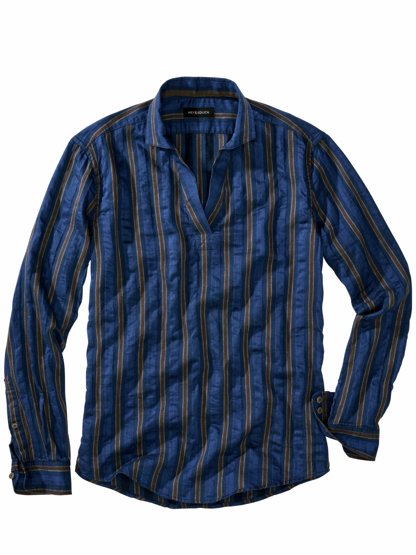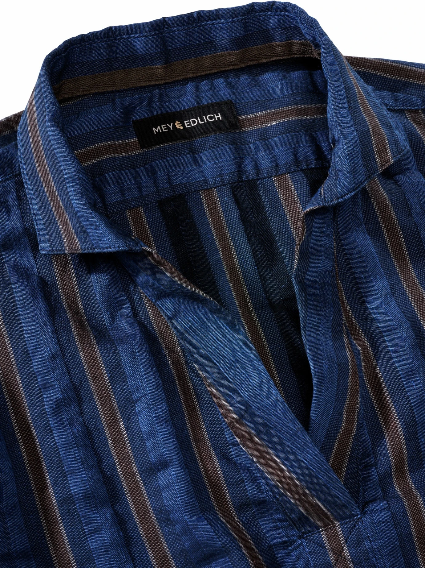 Rettet morgens wertvolle Minuten. Dieses Hemd ist schnell übergeworfen, ohne lästiges Knöpfen. Der Matratzenstreifen auf Ultramarinblau sorgt dafür, dass Sie aussehen, als kämen Sie frisch aus der Dusche. Dankbar an heißen Sommertagen. Und schließlich entfällt das Bügeln, weil die leinentypischen Knitter zum Look dazugehören. Wir haben das Hemd für Sie daher schon mal vorgewaschen.