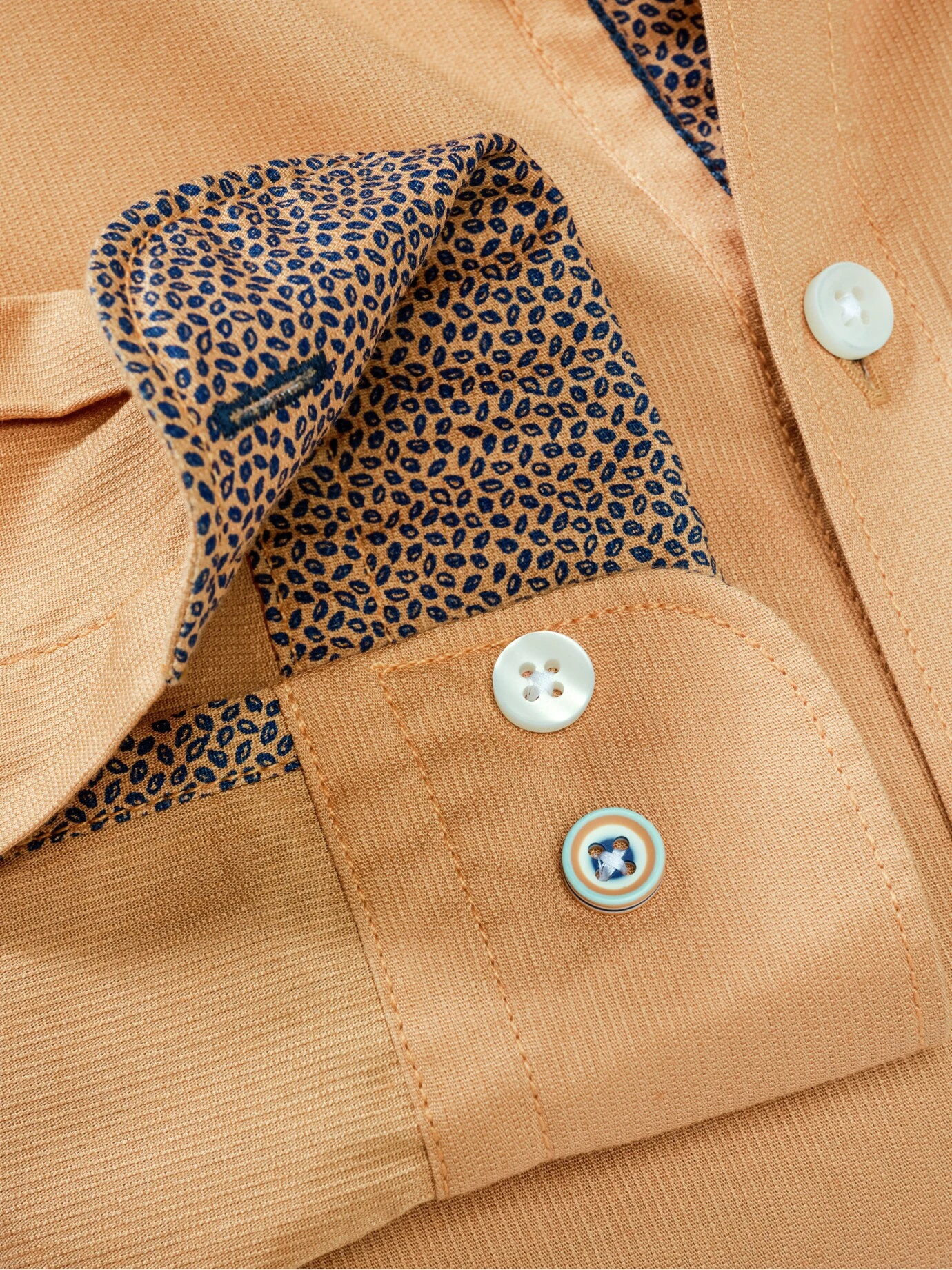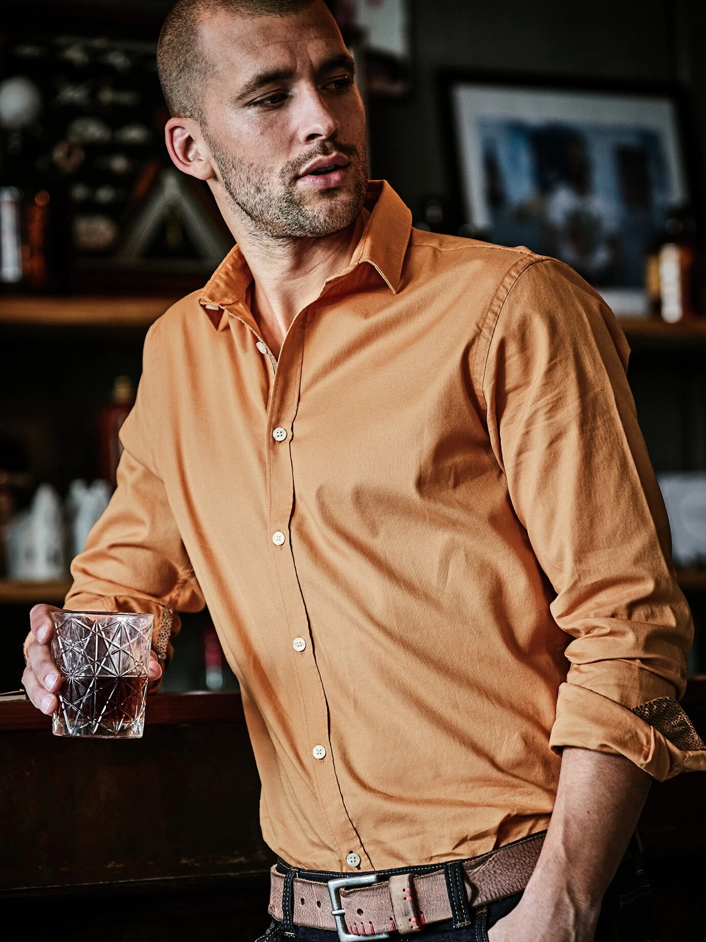 Passend, aber nicht angepasst. Nein sagen können, Flagge zeigen, Plan B durchziehen. Dieses Office-Hemd steht für einen aufrechten Stil, der sich nicht hinter Standards versteckt. Die feinen Rippen im Stoff wirken standfest. Besonders schön kommen sie ungebügelt zur Geltung. Das Hemd entwickelt dadurch so etwas wie eine eigene, vom Träger beeinflusste Handschrift. Verstärkt durch innen liegende Kontrastdetails, die sich nur zeigen, wenn man die Ärmel hochkrempelt und den obersten Knopf öffnet.