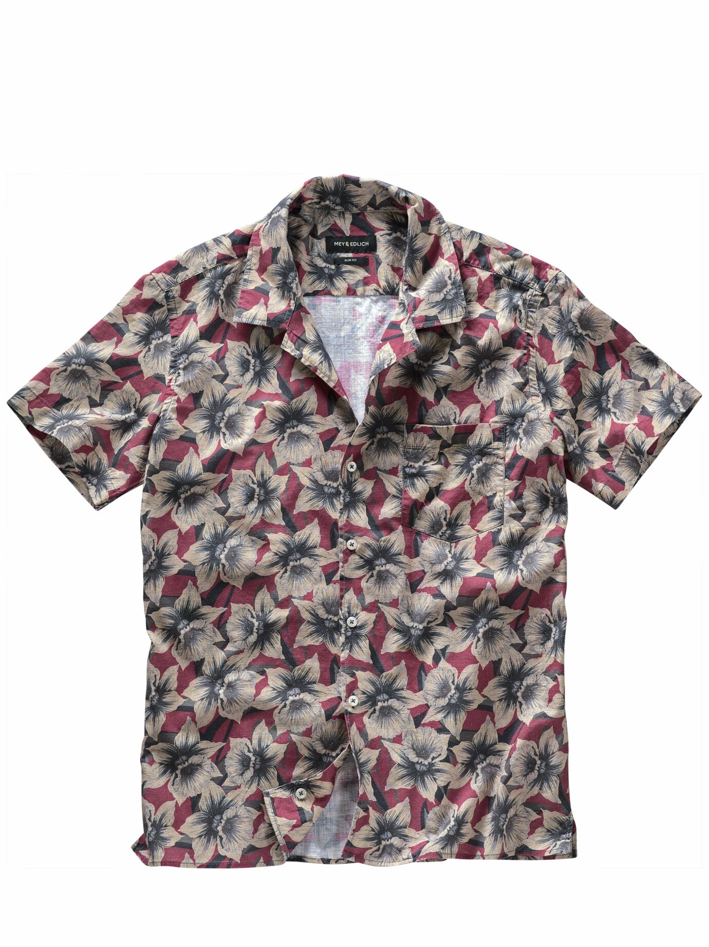 Einpacken, abreisen. Heißt nicht nur Hawaii, ist auch Hawaii. Halb aus Baumwolle kann es viel tropische Feuchtigkeit wegstecken, ohne gleich klamm zu werden. Halb aus Leinen bleibt es angenehm kühl, hat die typische, etwas rauere Haptik und macht diese delikaten Knitter für eine ungebügelte Präsenz. Kleiner Trost für alle, die hierbleiben: Der unbunte Style mit den Hibiskusblüten lässt Sie auch in der Stadt gut aussehen, erst recht in der nächsten Hitzewelle.