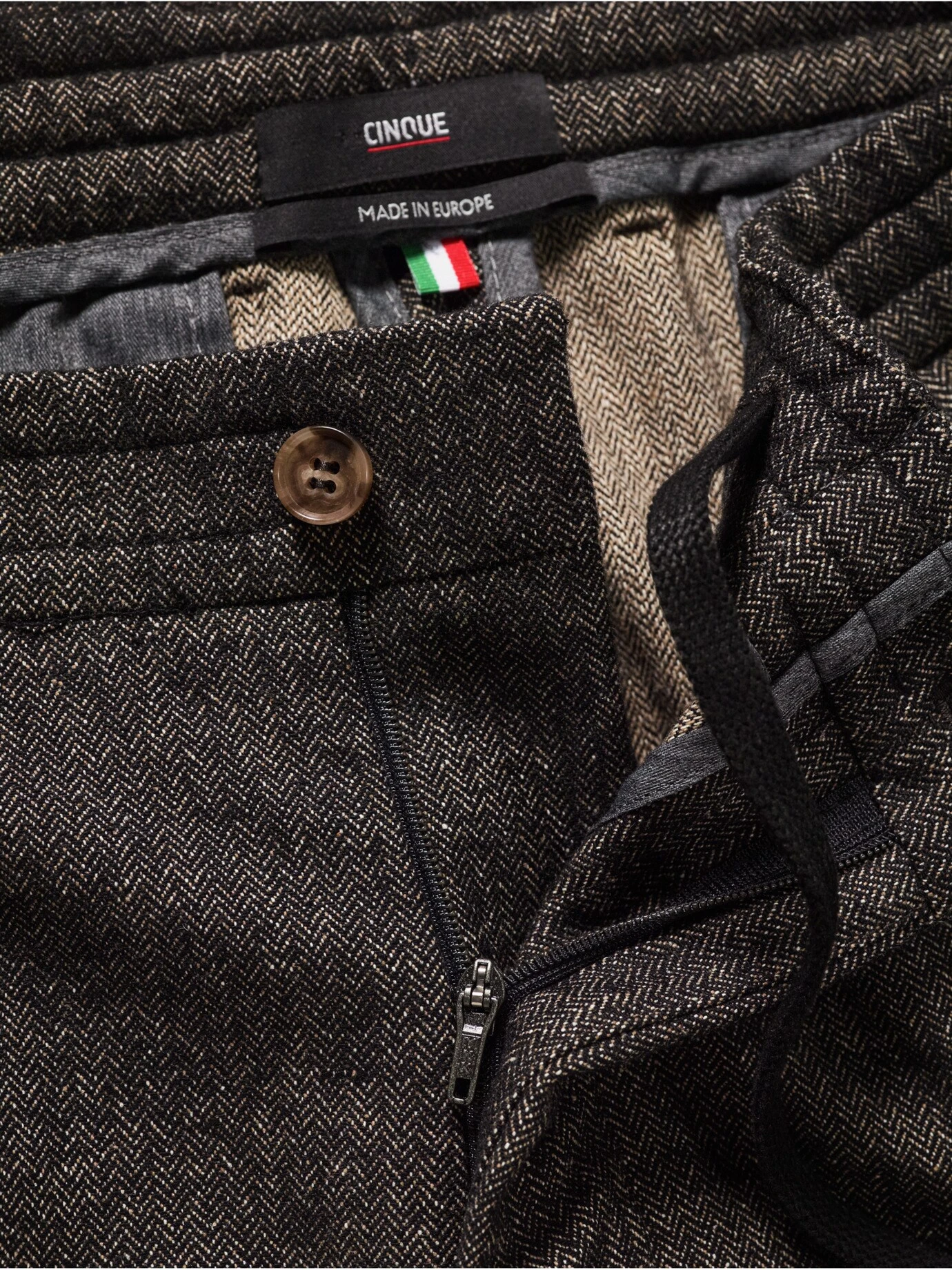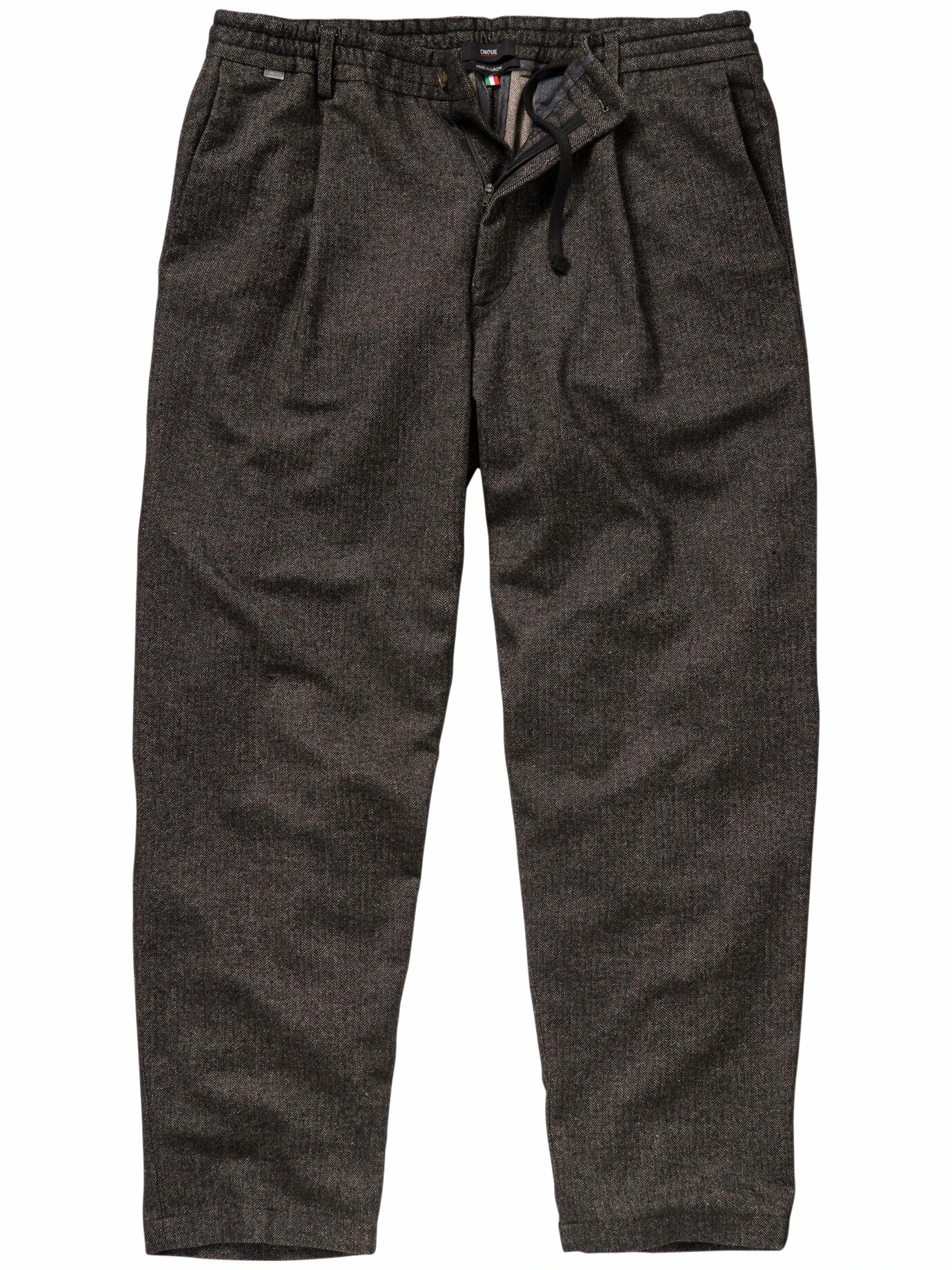 Mehr Weite. Mehr Tiefe. CINQUE verpasst der Businesswelt im Bereich Hose ein Upgrade. Schnitt und Passform sind neu austariert: locker und komfortabel, eben etwas weiter, die Bundfalte bringt Spielraum und lässt eine moderne Silhouette entstehen. Zusätzlich sind feine Zacken in den knitterarmen Wollstoff eingearbeitet. Einfach zu kombinieren mit schlankem Hemd (dann in der Hose), sehr modern zu weitem Pullover.