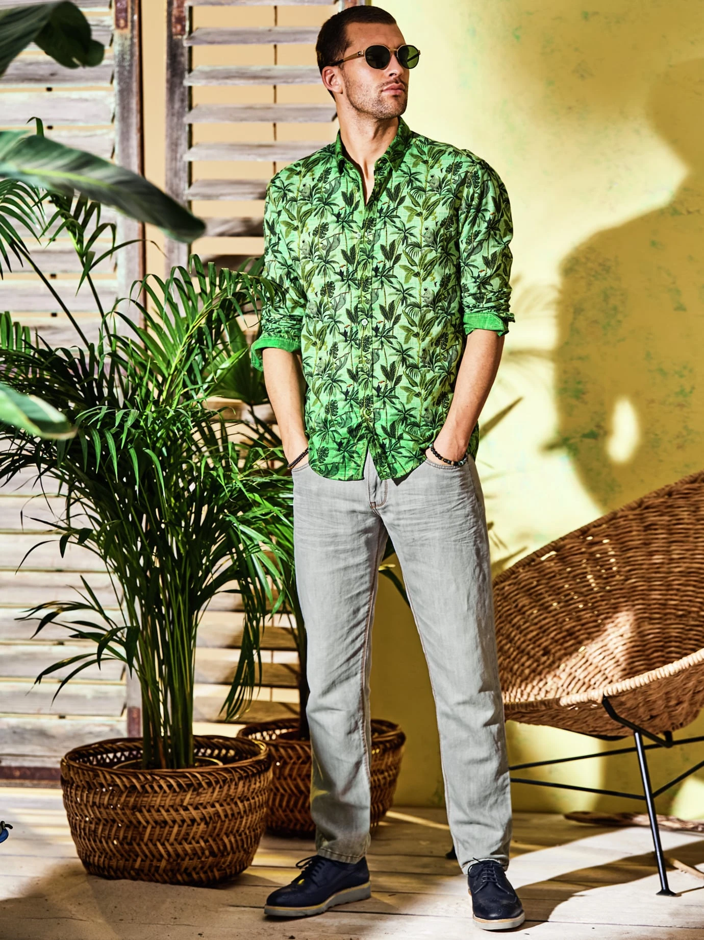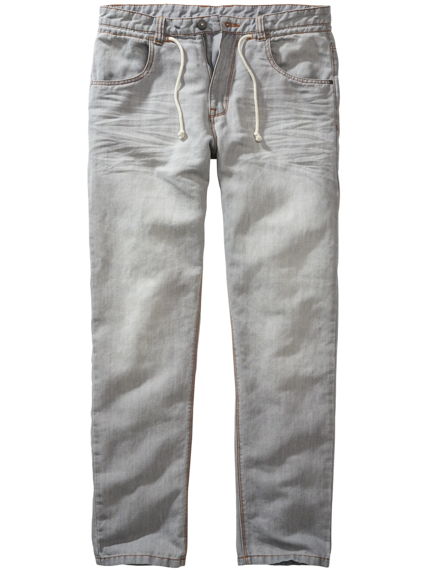 Anziehen. Entspannt sein. Ein Gefühl wie Urlaub von der Jeans. Der hohe Leinenanteil macht den Stoff leicht, dünn und luftig. Ungewöhnlich wird sie durch den Kordelzug unter dem Bund. Das Extra kann den Gürtel ersetzen. Wer mag, lässt die Strippen offen, was interessant wirkt, wenn sie unter einem Hemd mit Weste hervorlugen. Meist reicht aber auch das Shirt, am besten wirkt sie eh mit hochgekrempelten Beinen und Sand zwischen den Zehen.