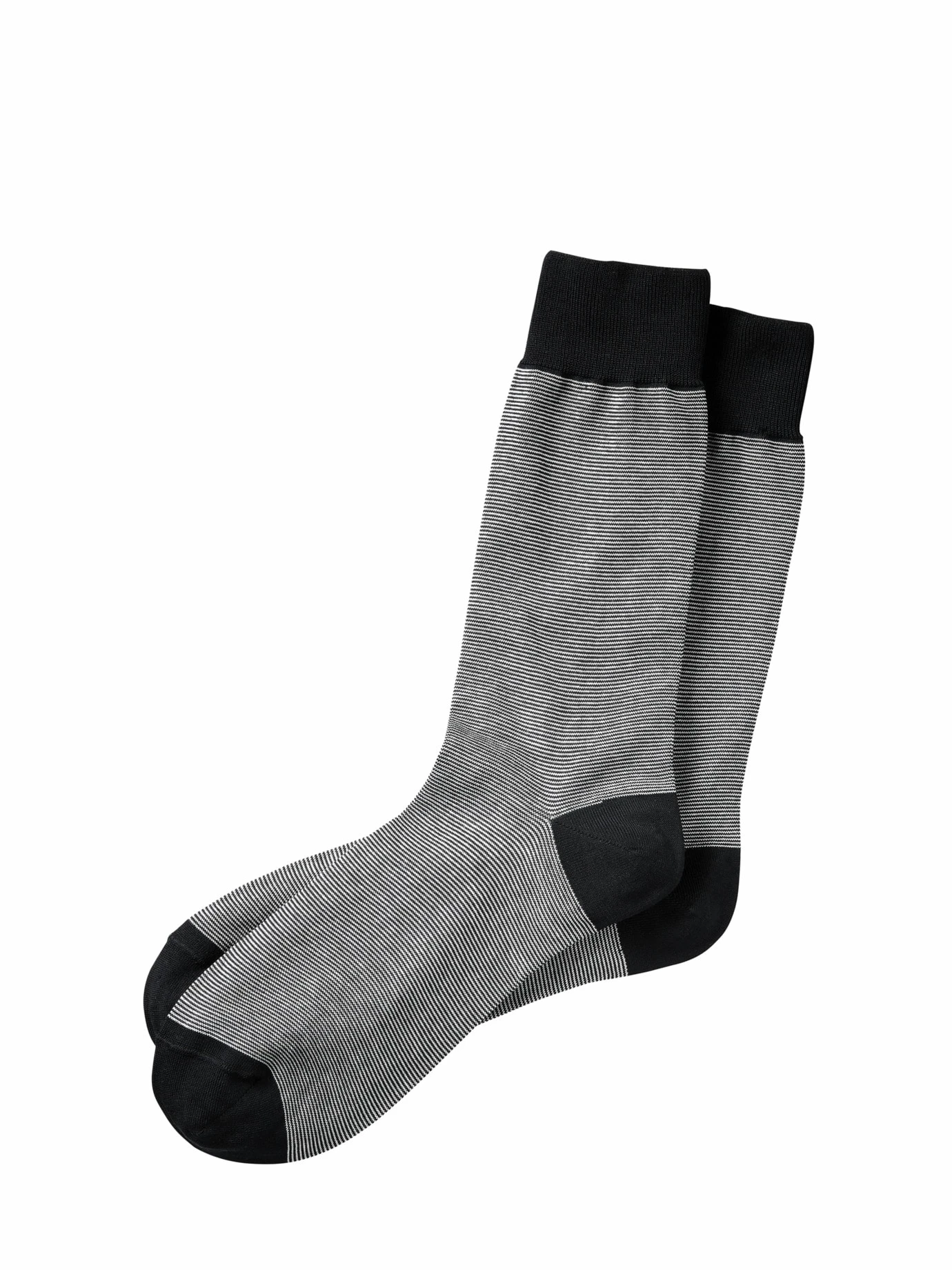 Schnell identifizierbar ist diese Socke, wenn sie sich in der Schublade unter ihre (vermeintlich schwarzen, einzelnen) Kameraden mischt. Ihre Besonderheit liegt im Black’n’White-Kaffeemuster – und in der glatten Haptik: Bevor das italienische Garn mit hohem Baumwollanteil verstrickt wird, wird die Baumwollfaser veredelt, indem Hightech hinzugegeben wird. Ergibt eine strapazierfähige und gleichzeitig wunderbar weiche Socke, die zu Jeans wie Anzughose passt und Ihnen morgens gleich ins Auge springt.