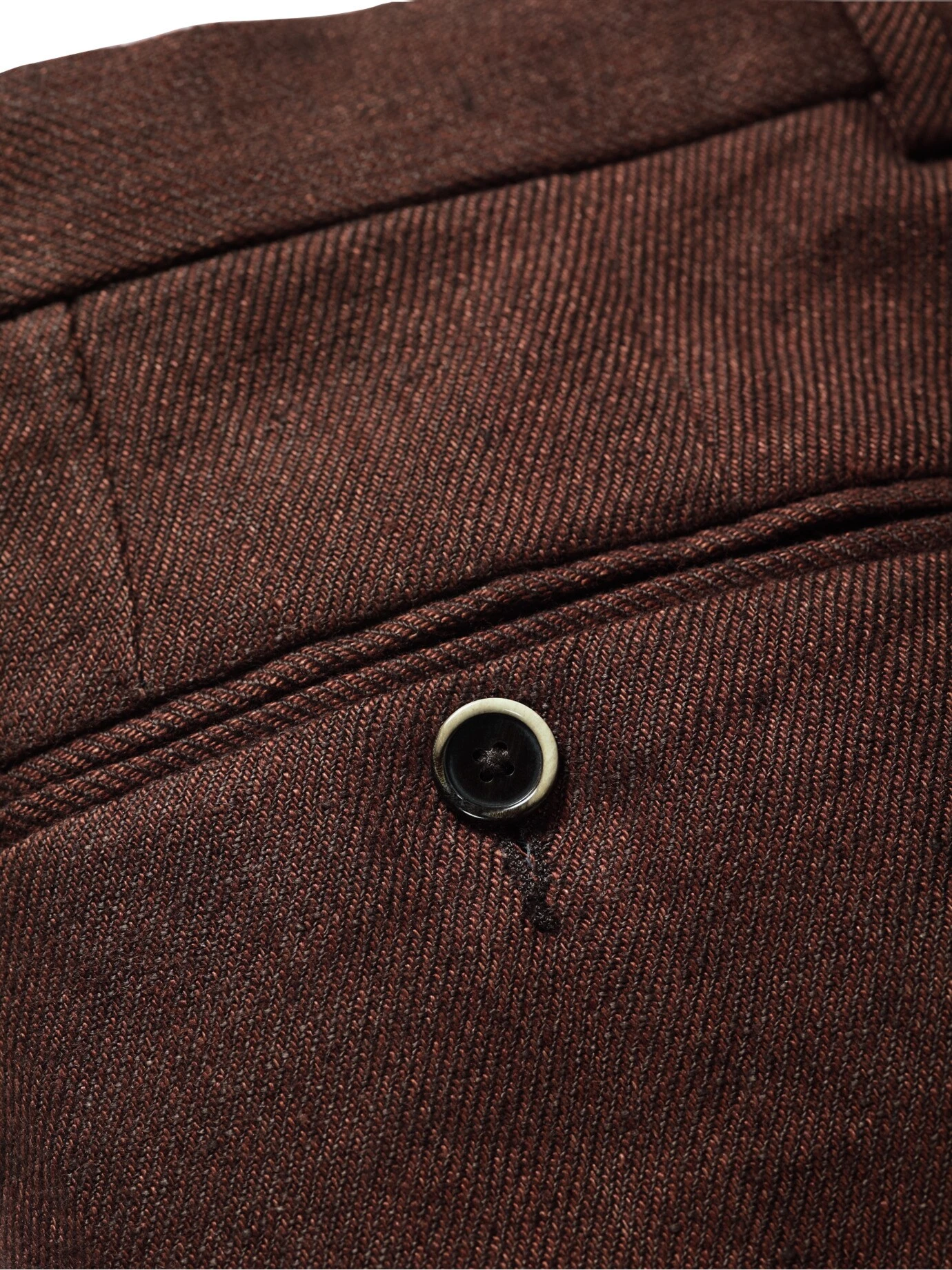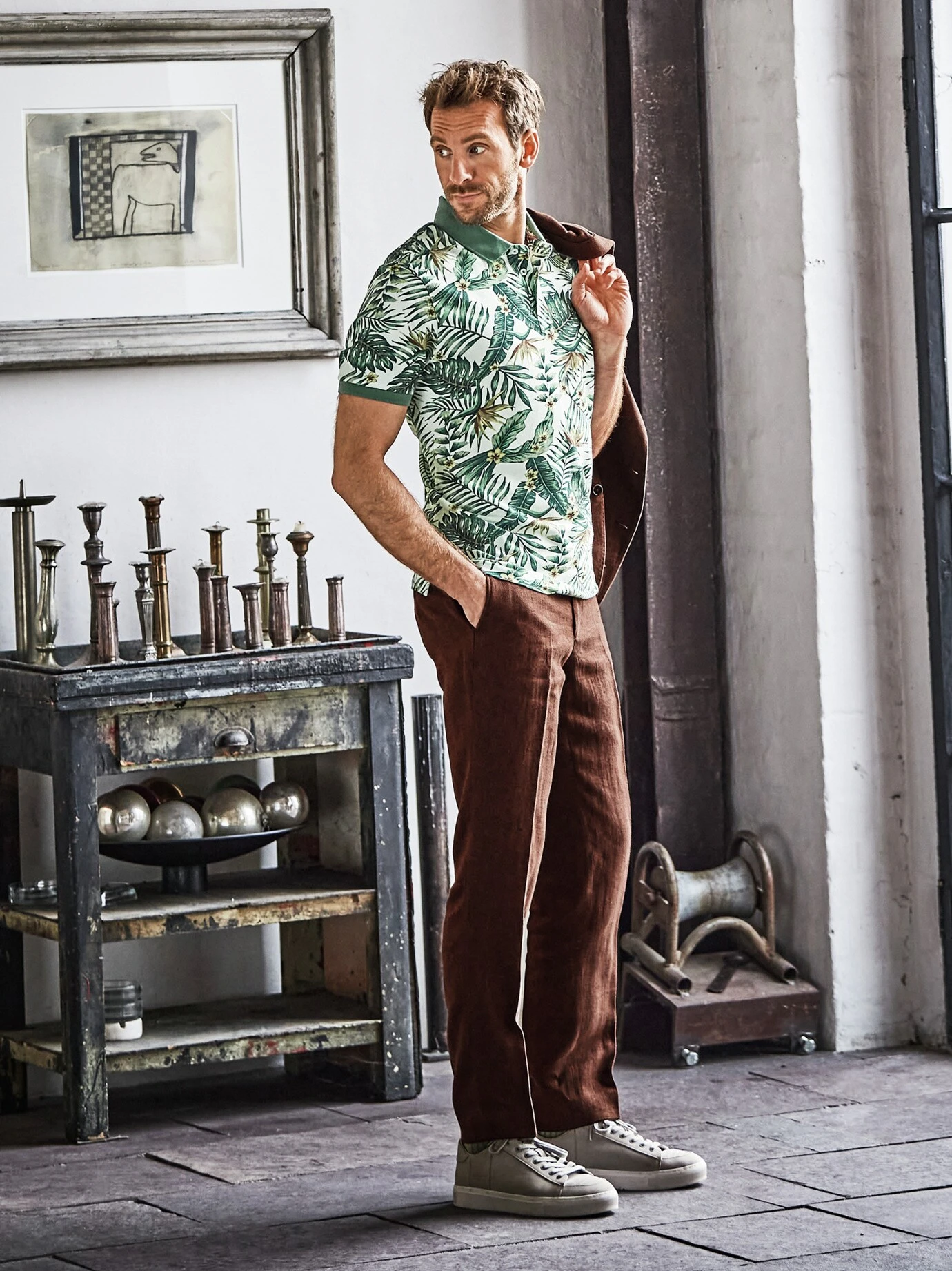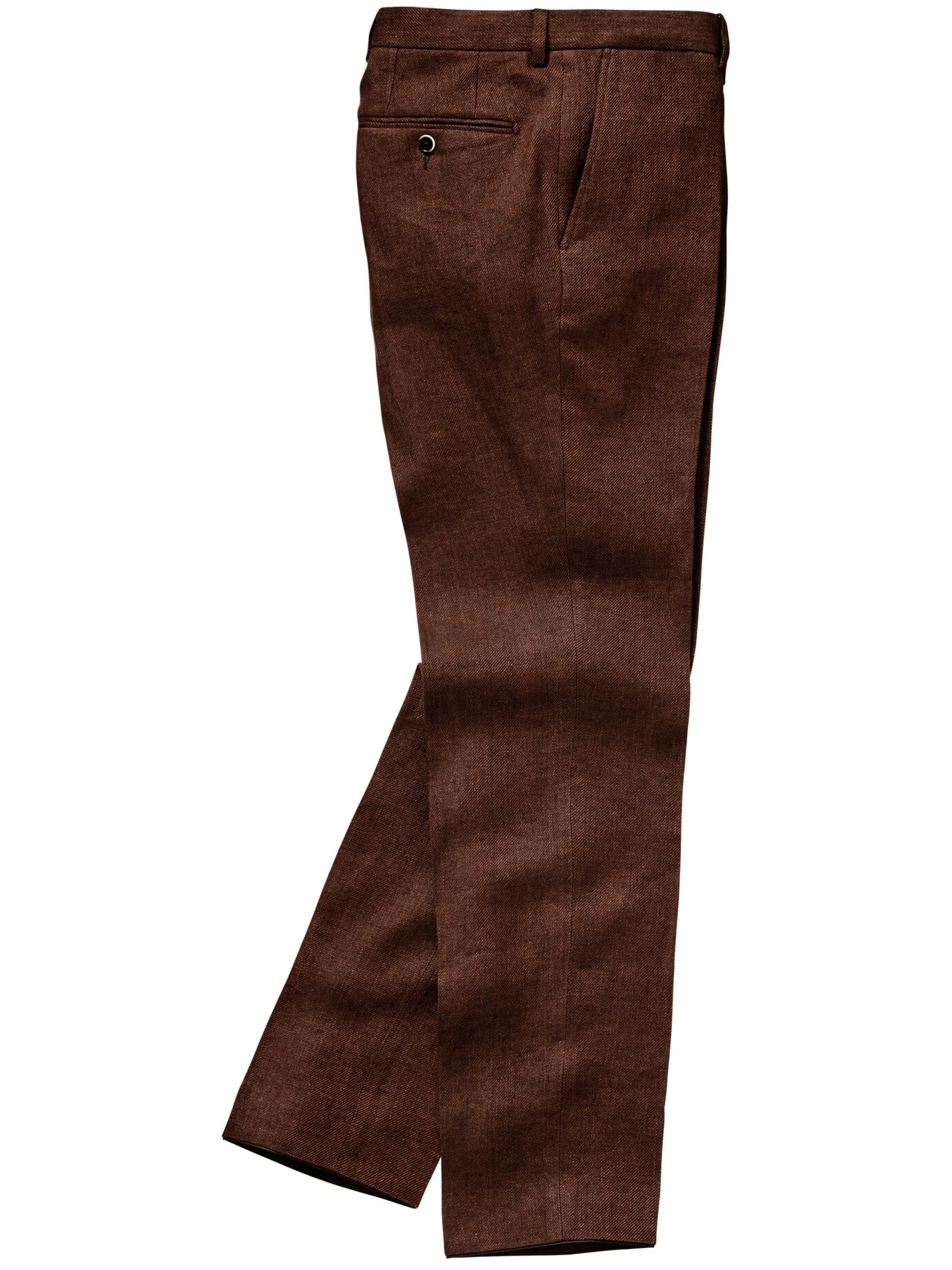 Die Richtige bei 28 °C im Schatten. Während andere die nächste Insel herbeisehnen, bleiben Sie in dieser Leinenhose gelassen. Ihr Leinen stammt aus Italien, es wird sorgsam ausgekämmt, bis schließlich die längsten Fasern übrigbleiben (nur ein Zehntel der Ernte entspricht dieser Güte). Anschließend gewebt zu dichtem Twill, das Finish leistet ein kraftvoller Luftstrom: erstaunlich glatt und weich, in Summe bequem und leicht. Wie es sich für hochwertiges Leinen gehört, schlägt es angezogen sanfte Knitter und wirkt sehr lebendig. Passt am besten zu gleichnamigem Anzugsakko (Nr. 24-6546-7).