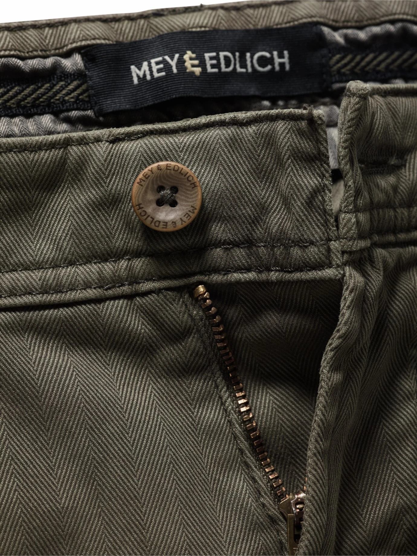 Irgendwas ist immer. Die Cargo für Männer der Tat. Der vorgewaschene italienische Baumwollstoff mit Fischgratmuster sieht aus, als wäre er schon länger im Einsatz. Stauraum-Taschen für Arbeitshandschuhe und Multi-Tool. Workwear-inspirierte Details: Abnäher am Knie und Druckknöpfe an den Gesäßtaschen (damit in der Aktion nichts rausfällt). Gut kombiniert mit Hemd oder Longsleeve, Weste optional.