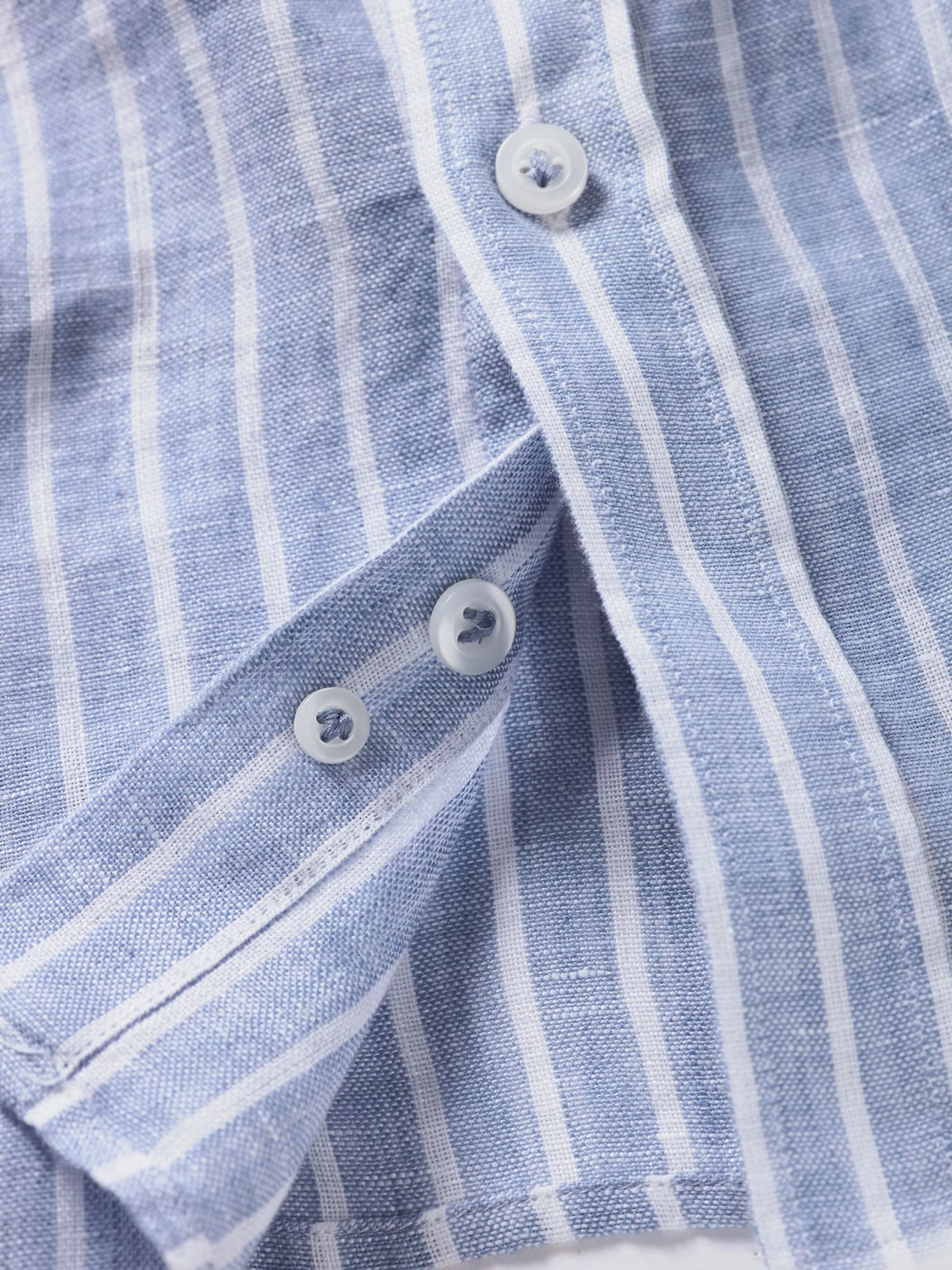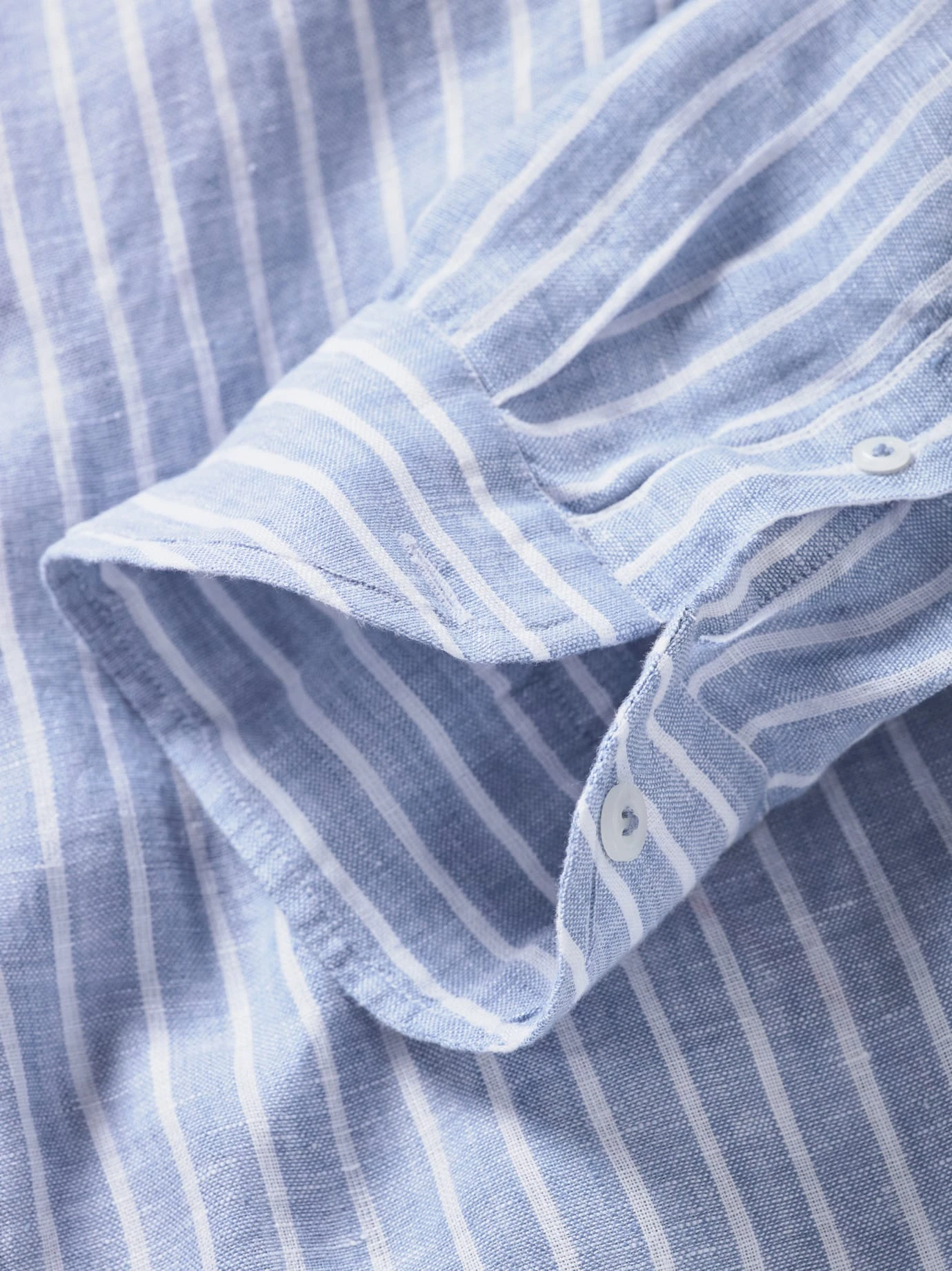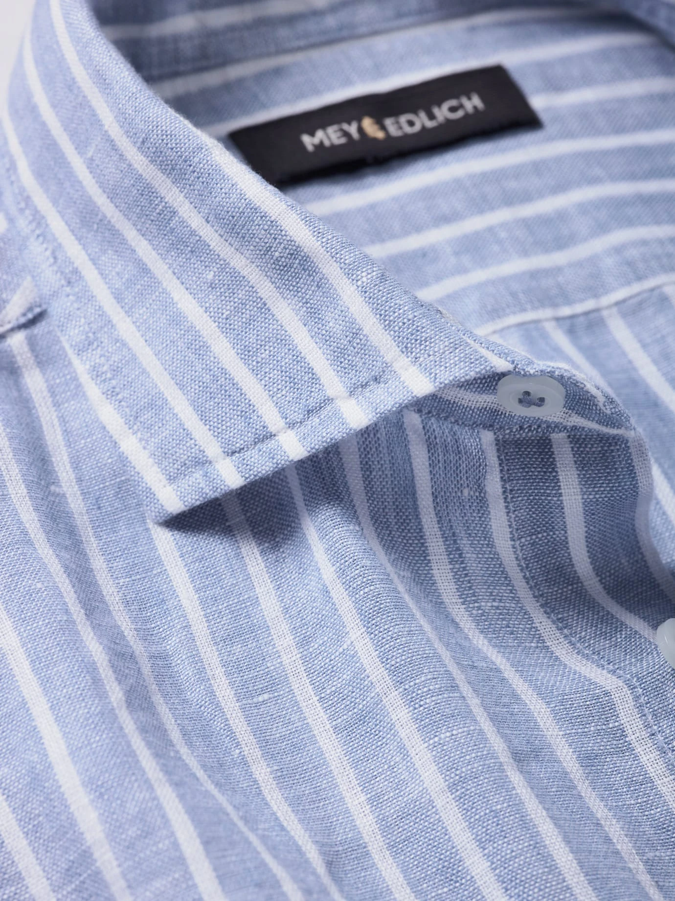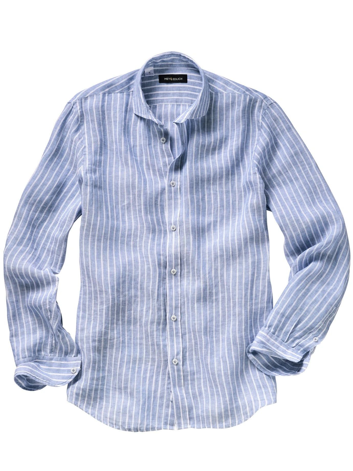 Gelassen bleiben bei 28 °C im Schatten. Von der warmen Sonne des Mittelmeeres und dem Umgang der Menschen mit dieser ist dieses Hemd inspiriert. Unaufgeregter Style, der durch den penibel eingewebten Streifen und durch das hochwertige Leinen sehr edel wirkt. Leinen ist luftdurchlässig und saugfähig und daher ideal im Sommer. Macht sich sogar gut zum hellen Sommeranzug im Meeting, durch den abgerundeten Saum tragen Sie es aber öfter zur Leinenhose oder leichten Jeans.