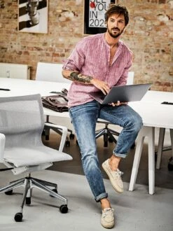 Verschwindet nie im Keller: das Overshirt mit viel wärmender, temperaturausgleichender Wolle und großen knöpfbaren Taschen für alltägliche kleine Dinge. Weil es einerseits ein dickeres Hemd und andererseits eine leichte Jacke ist, ist es fast ganzjährig im Einsatz. Praktisch, dass das Madras-inspirierte Karo in den drei Grundfarben nach Mondrian so gut mit Denim und Cord matcht und weitere Outfit-Gedanken wegfallen. So bleibt mehr Zeit für die schönen Dinge des Lebens.