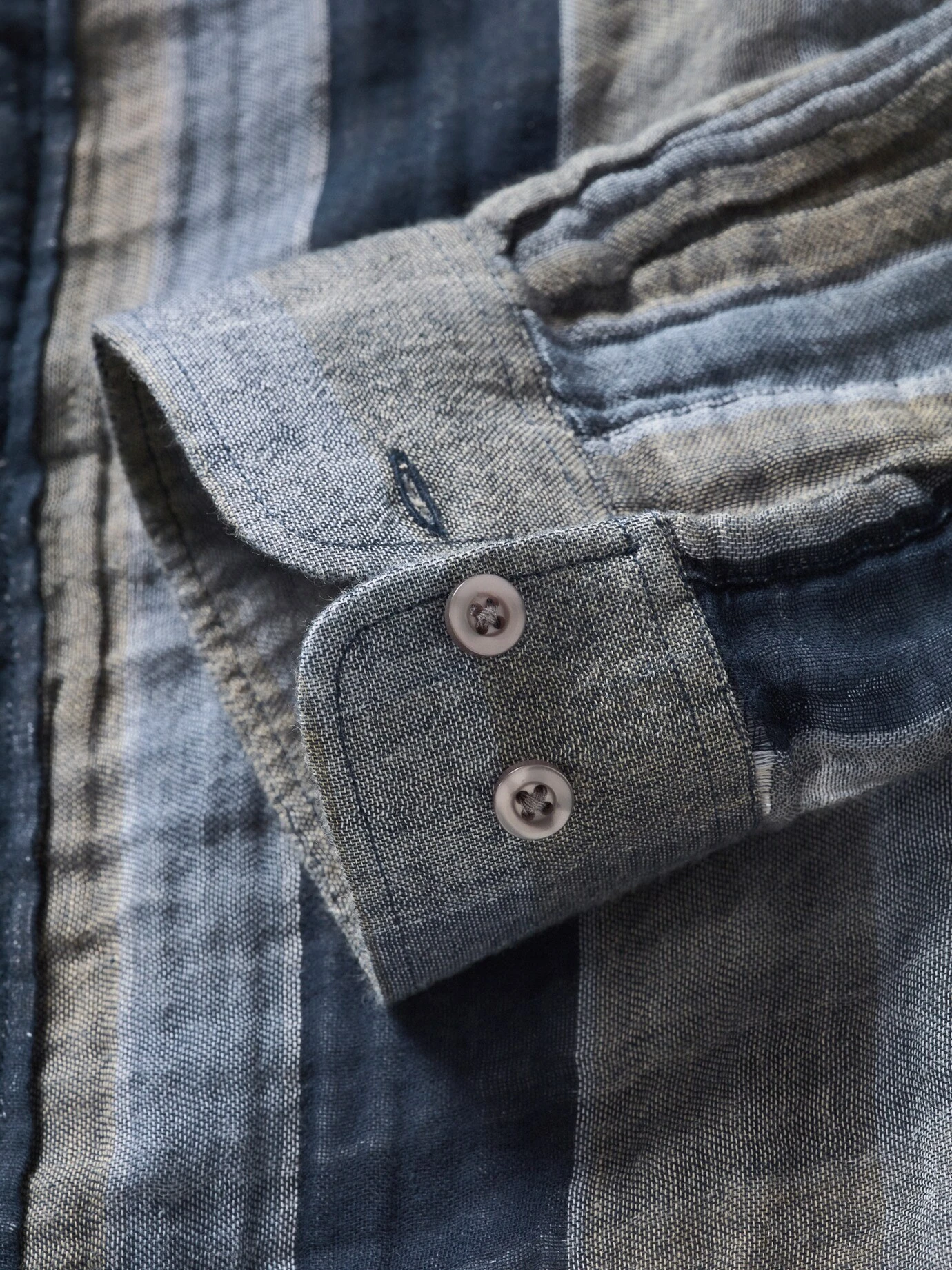 Der Öko unter den Hemden. Vom Anbau der Fasern, über das gesponnene Garn, dem gewebten Stoff bis zum fertigen Teil – hier werden alle Verarbeitungsstufen kontrolliert und nach GOTS (Global Organic Textile Standard) zertifiziert. Und so spiegelt sich die Naturverbundenheit auch im Design wider: ein Naturburschen-Karo in gediegener Farbkombination. Übrigens mit zwei Seiten: Zwei Stoffe, die mit feinen Stichen miteinander verbunden (gebondet) sind.