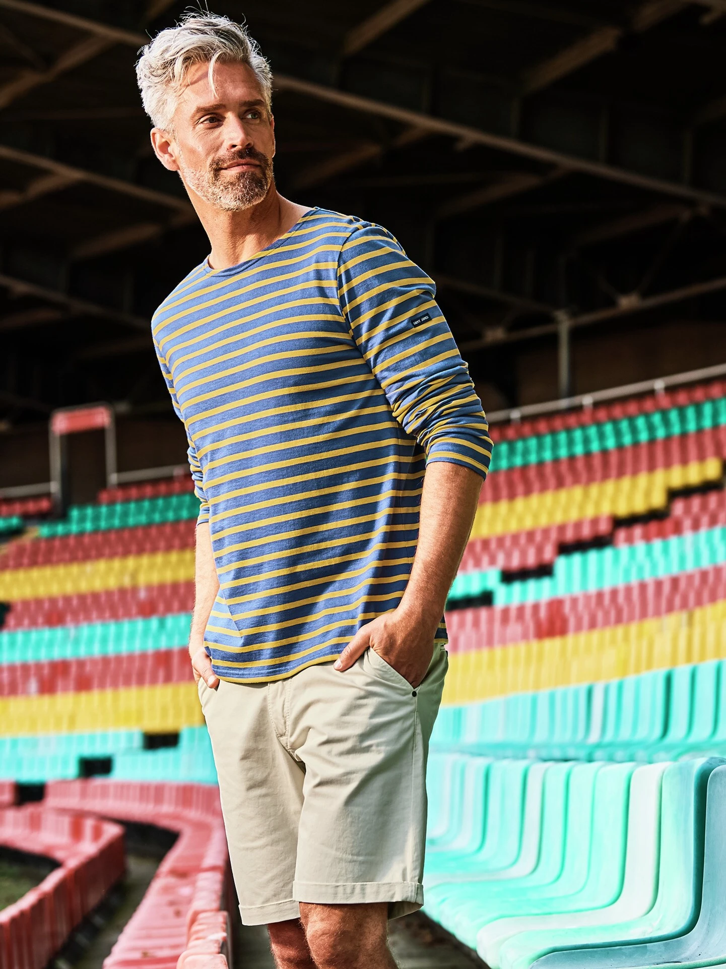 Die richtige Länge ist entscheidend. Und bei Shorts hängt sie maßgeblich von Körpergröße und Trainingszustand der Wadenmuskeln ab. Als Faustregel aber gilt: Shorts sollten knapp oberhalb des Knies enden. Diese hier können Sie beliebig krempeln oder auch ungekrempelt tragen und so Ihr Optimum finden. Sie ist stückgefärbt und wirkt deshalb auch schon wie perfekt eingetragen.