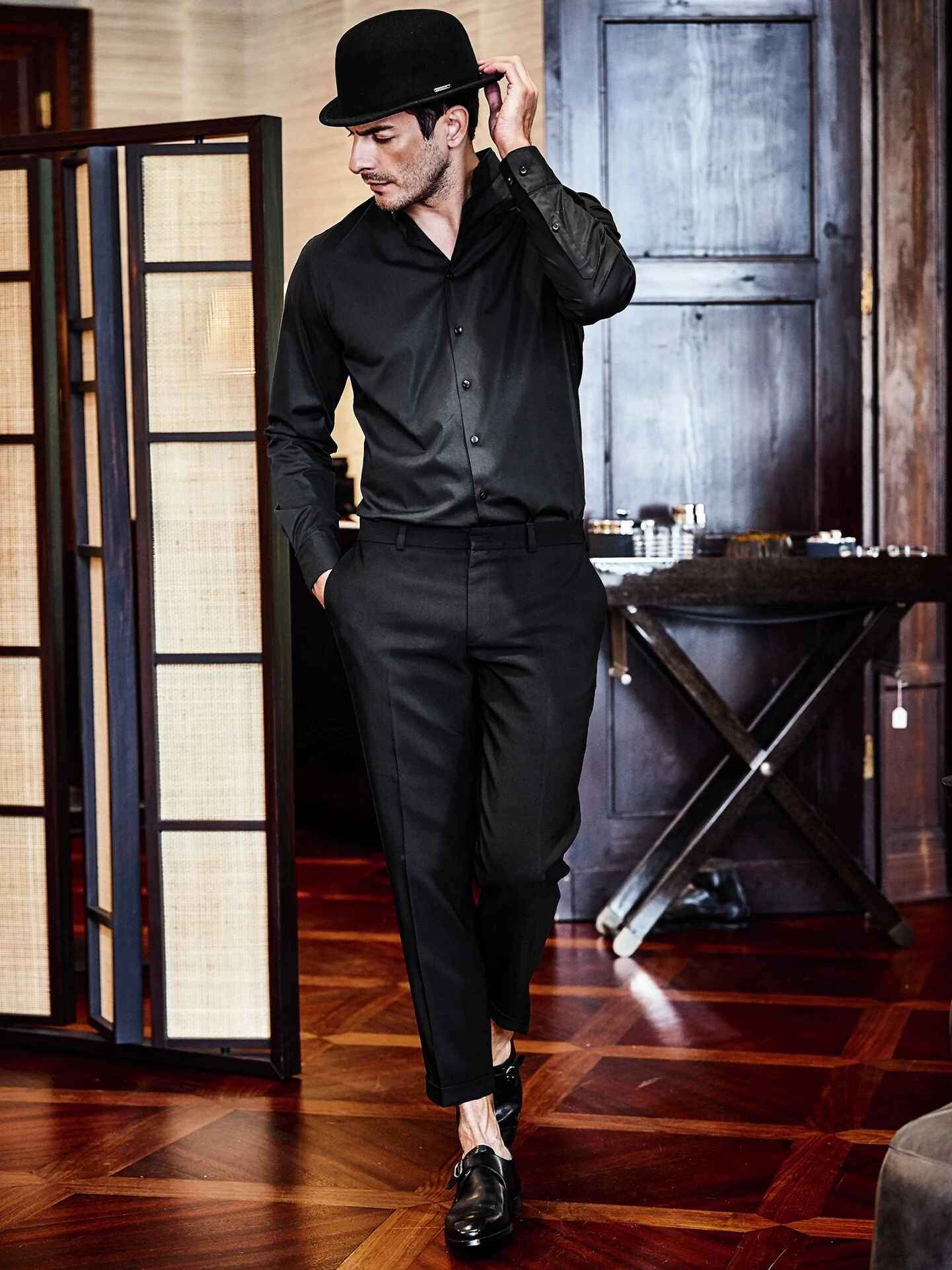 Der Kragen dient dem erhobenen Haupt – stramm unter dem Kinn endete im 19. Jahrhundert ein Stehkragen (so eng, dass Nicken schwerfiel!). Heute verläuft der Kragen deutlich entspannter und bringt durch ein zusätzliches Piping (eingenähter Einsatz am Kragenende) einen guten Stand mit. Das Hemd kommt gezielt ohne Krawatte aus und sieht unterm Sakko korrekt aus. Der elastische Popelinestoff ist bequem, besonders griffig und bleibt länger glatt als übliche Hemdenstoffe.