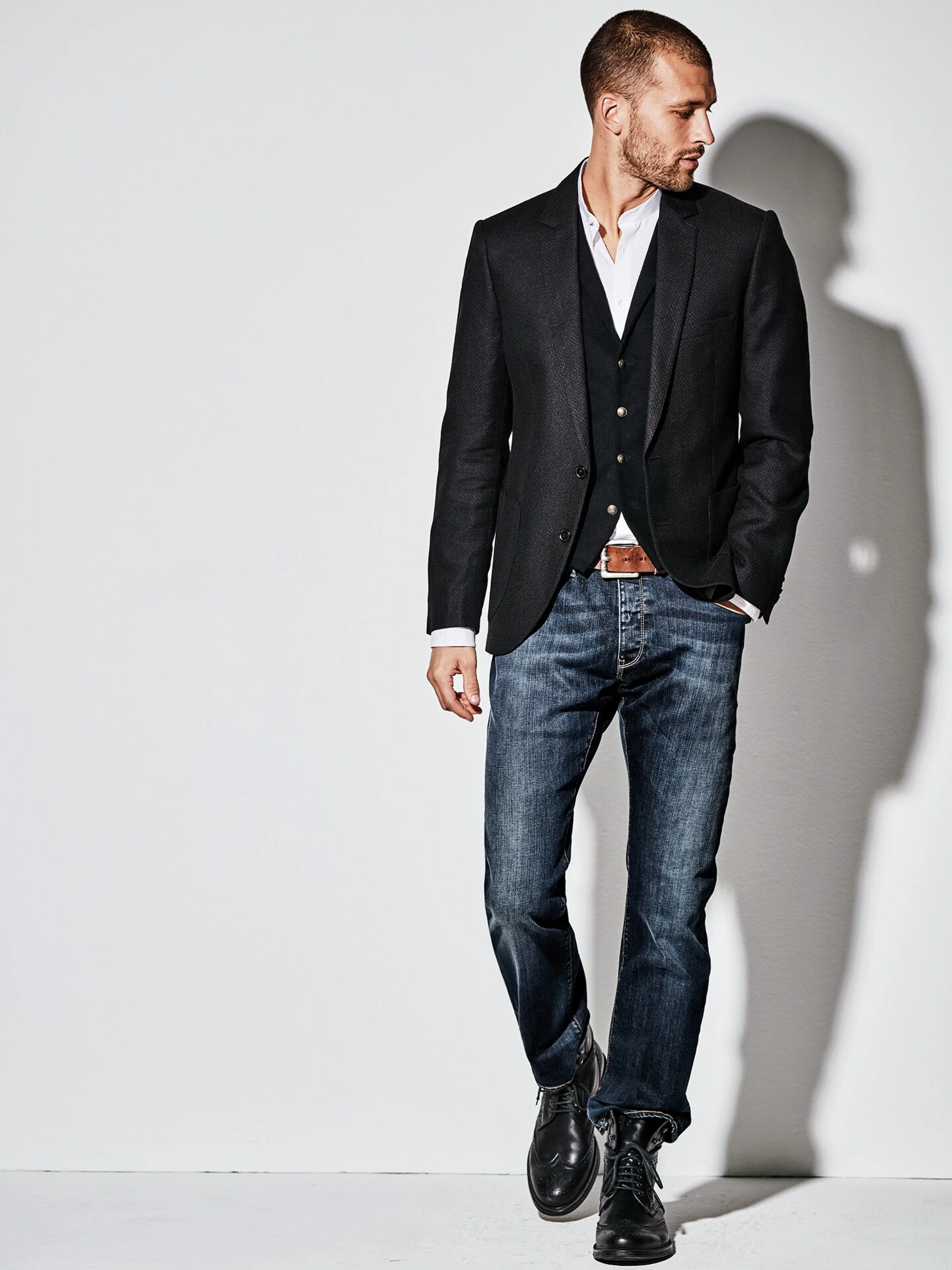 Jeans werden wieder dunkler. Weil sie heute – in cleaner Waschung – im Business nicht nur akzeptiert, sondern sogar gern gesehen sind. Für den nötigen Neu-Effekt zwischen allen bereits geliebten Jeans besitzt dieser Denim zusätzliche Grünanteile, was äußerst ausgewogen und vornehm (Herr Licher nennt es „posh“) wirkt.