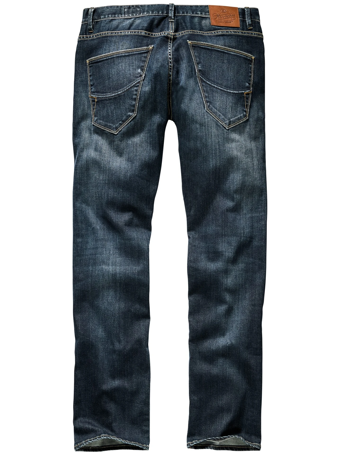 Verarbeitung: 10 Unzen leicht, mit kupferfarbenen Nähten und Nieten und fünf derben Metallknöpfen statt Reißverschluss erinnert sie ein wenig an die Zeit, in der Jeans noch ungewaschen getragen wurden. Five Pocket. Regular Fit.