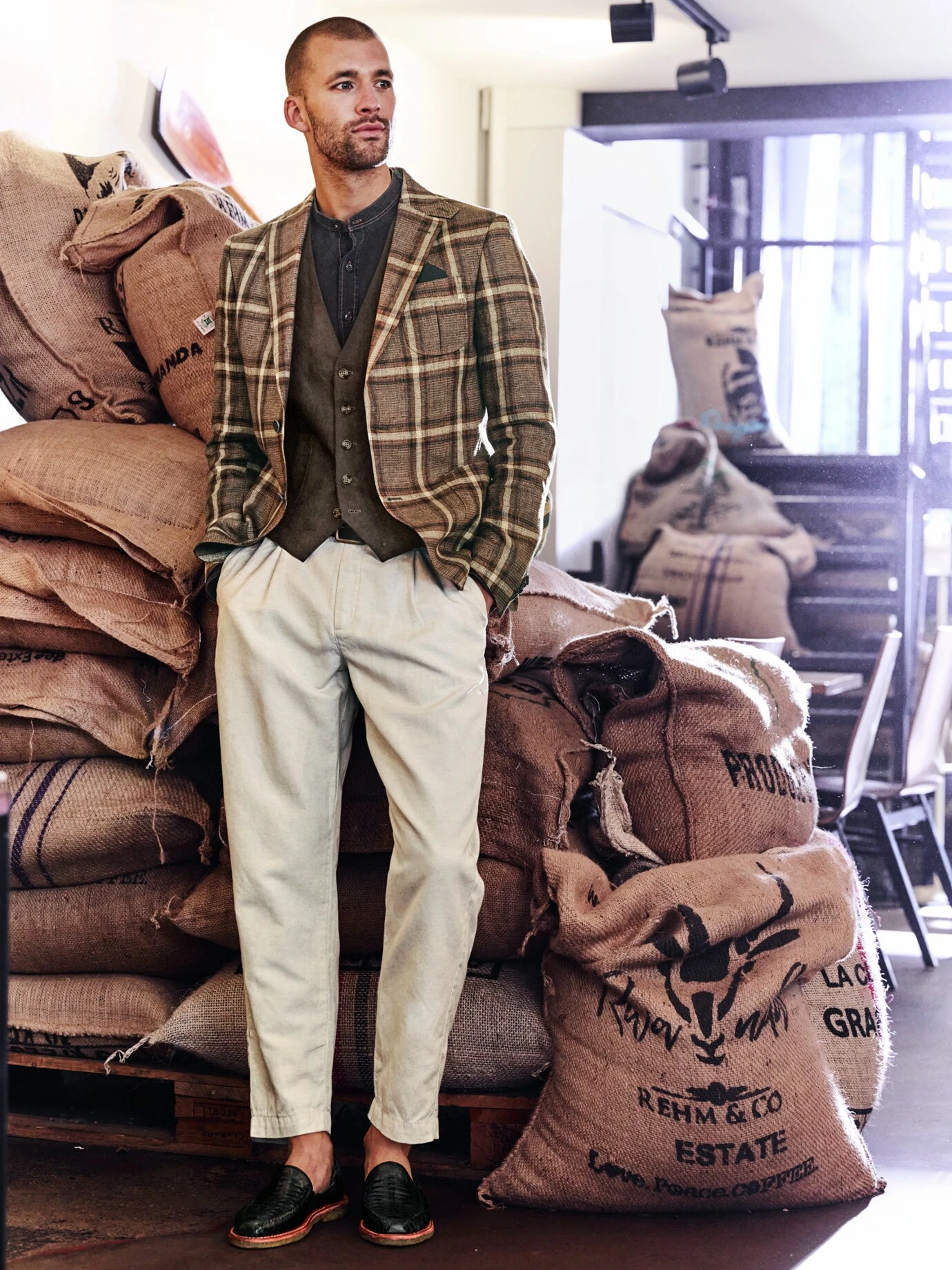 Wirkt auf den ersten Blick: heller Naturton, üppiger Tucheinsatz, gute Outline. Das Volumen strahlt Entschlossenheit aus, formt starke Beine und schafft Komfort. An heißen Sommertagen sorgt es zusammen mit dem hohen Leinenanteil für Kühlung und Luftaustausch. Die kleine Bundfalte bringt Fasson in den Schnitt, der nach unten schmal ausläuft.