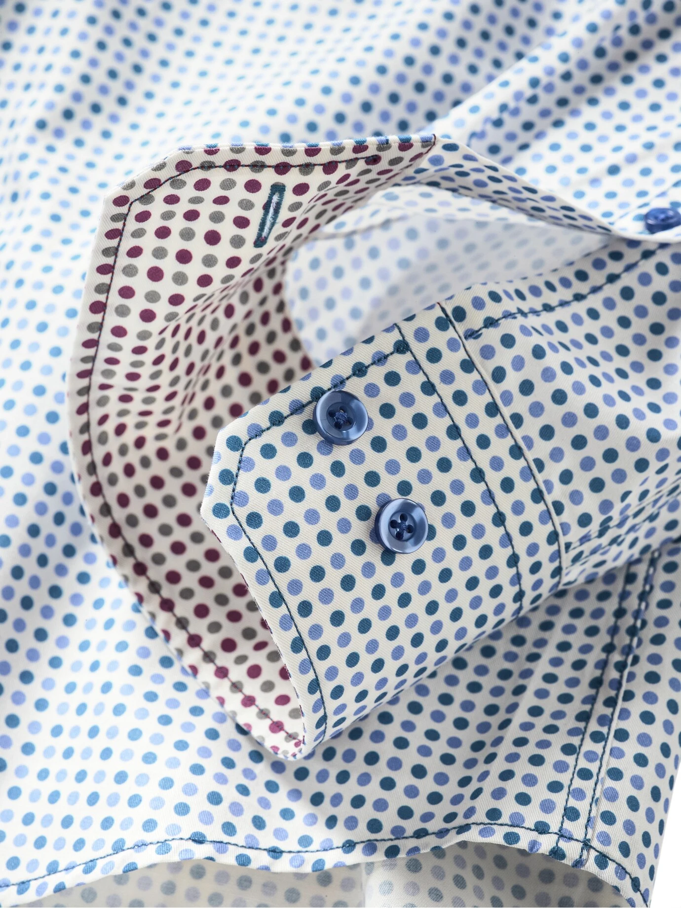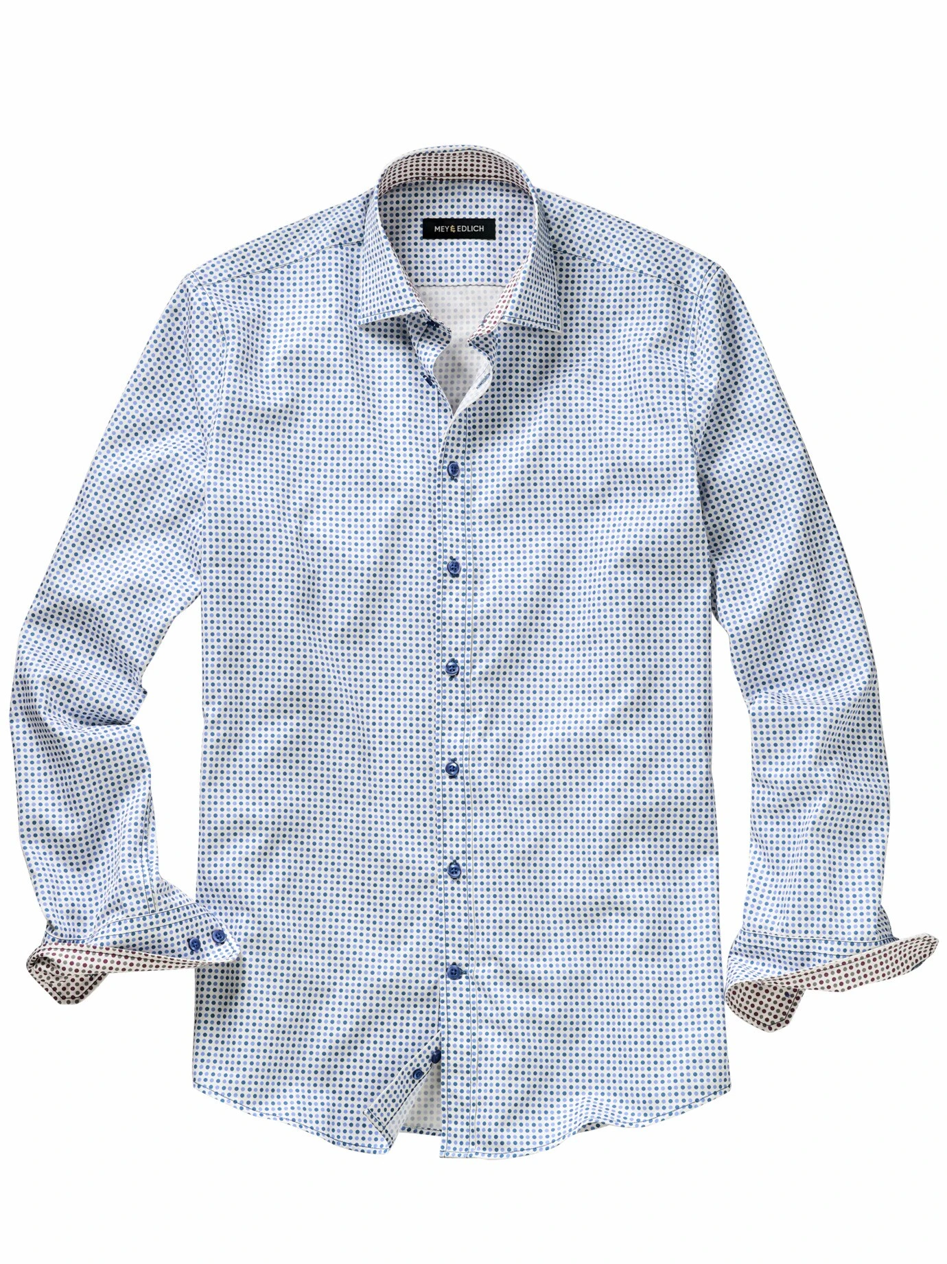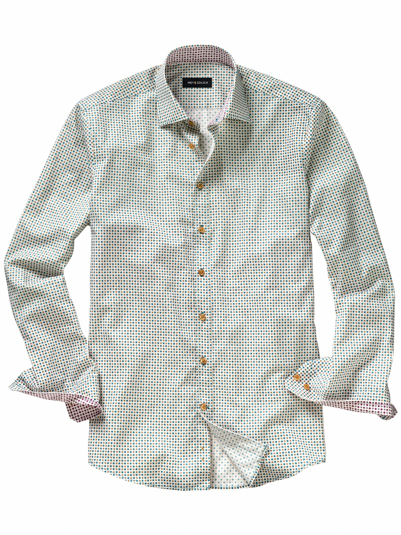 Dieses Hemd ist gewinnend wie ein Lächeln. Dot-Shirts machen Laune, was sich beim Anziehen auf den Träger und dann auf seine Mitmenschen auswirkt. Gemacht für die, die mit Charme weiterkommen. Die feinen Punkte sind auf einen Baumwollsatin mit edel glänzender Oberfläche und angenehm weichem Griff gedruckt. Dots nehmen jedem Anzug die Strenge und begegnen Verhandlungspartnern mit Augenzwinkern. An der Bar wird eine rockige Lederjacke zum bewusst inszenierten Gegenstück.