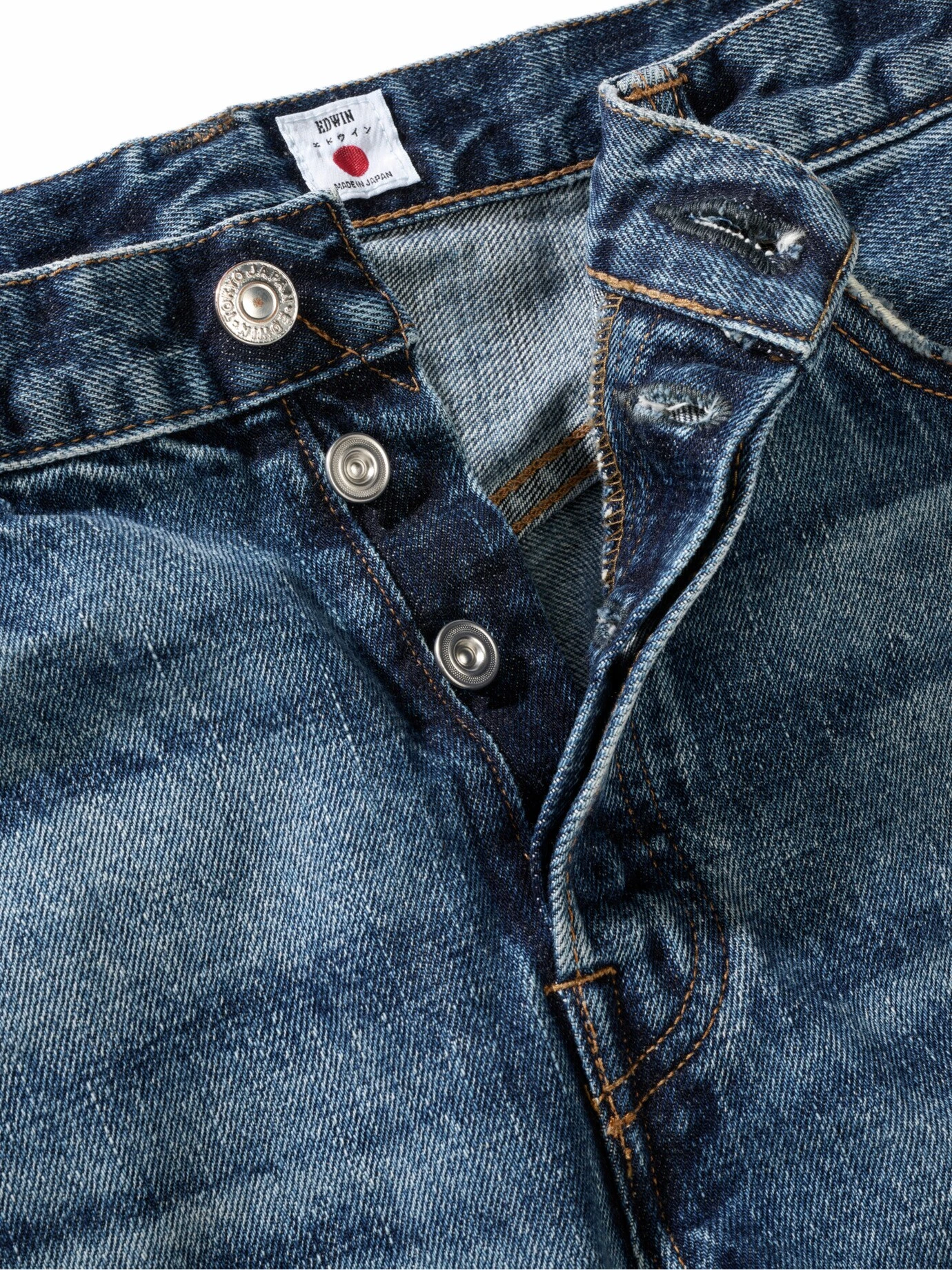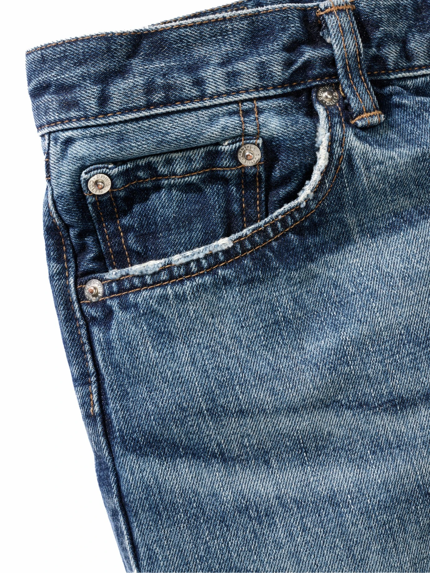 Material: 100 % Baumwolle. Maschinenwäsche nur ab und an. Von EDWIN.