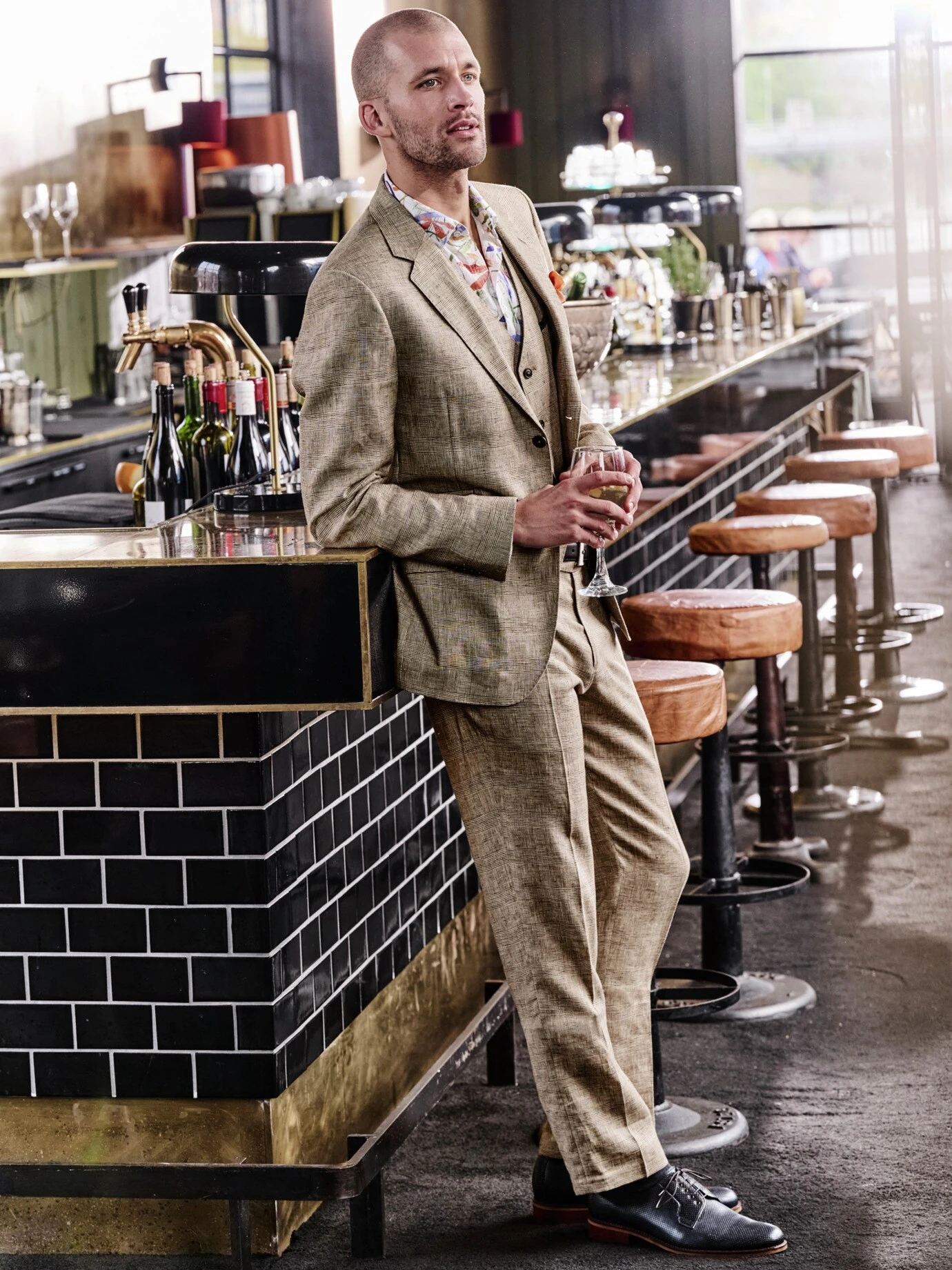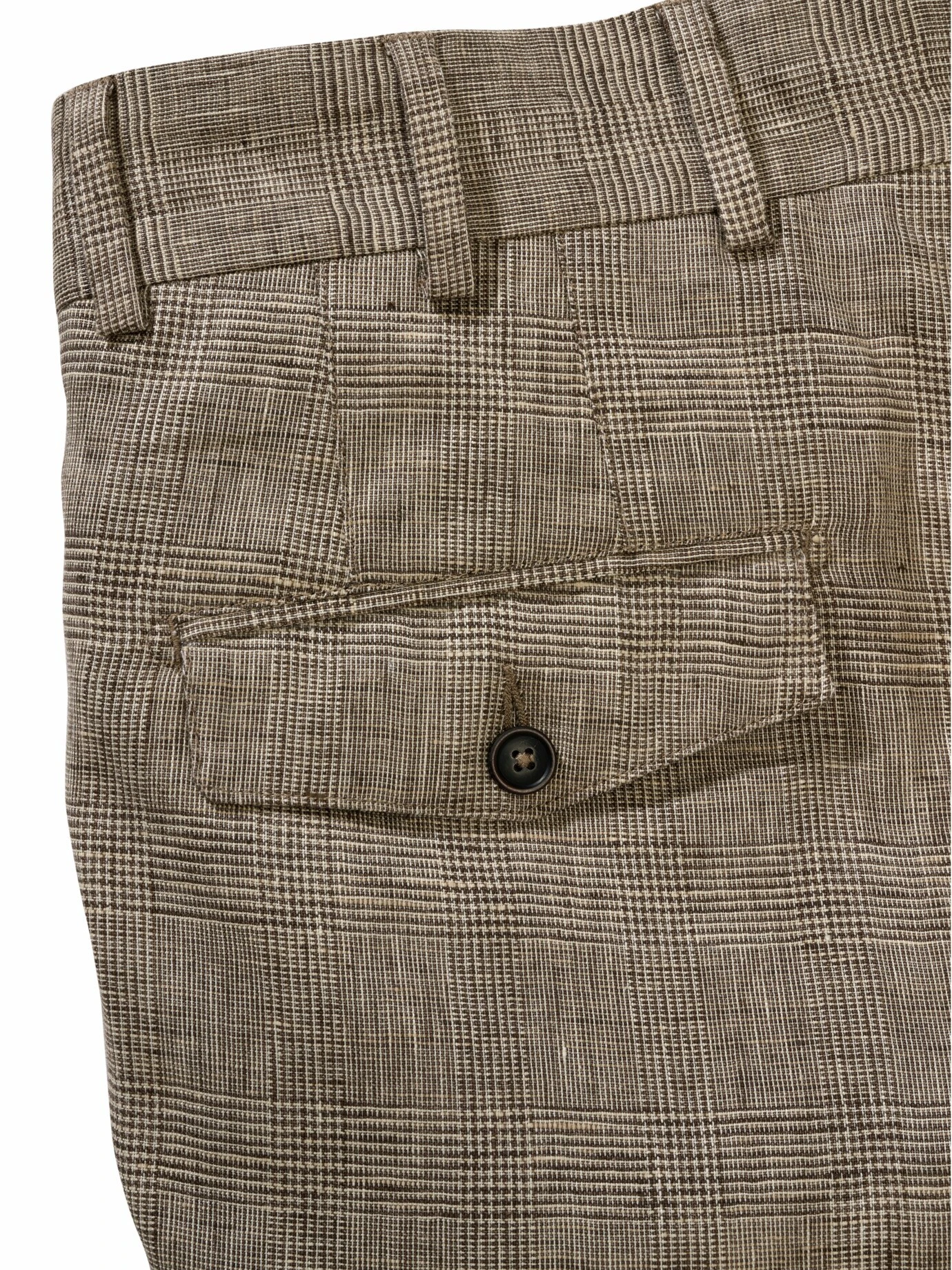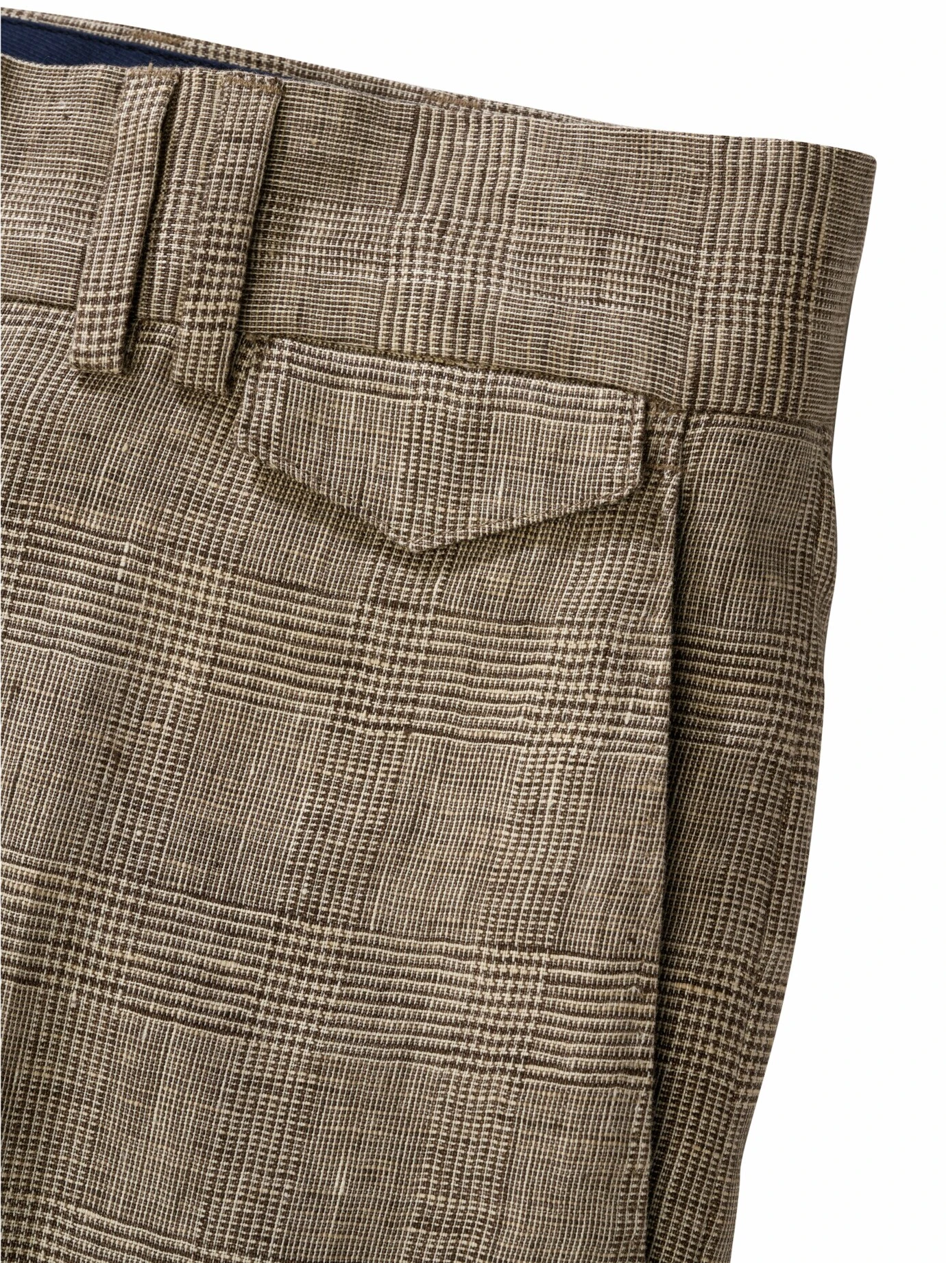 Die Relevanz des Stoffes steigt mit den Temperaturen: Bei dieser Glencheck-Hose ersetzt reines Leinen von Leomaster aus Italien die englische Wolle, wendet so Hitzekoller ab und erlaubt das Mittagsruhen im Schatten. Ihr subtiles Karo passt zu lauer Luft, längeren Abenden und wunderschönen Sommerfesten. Es knittert kaum merklich und lässt sich ebenso leger wie elegant tragen. Wie vom Schneider mit abgesetztem Bundfutter in Navy und rotem Handstitch. Ein Glücksgriff in Stil und Charme 24/7 mit T-Shirt, Polo oder Hemd. Schraubt im Duo zu Weste (Nr. 24-6442) oder Sakko (Nr. 24-6441) der gleichen Art die gesellschaftliche Wertschätzung nach oben.