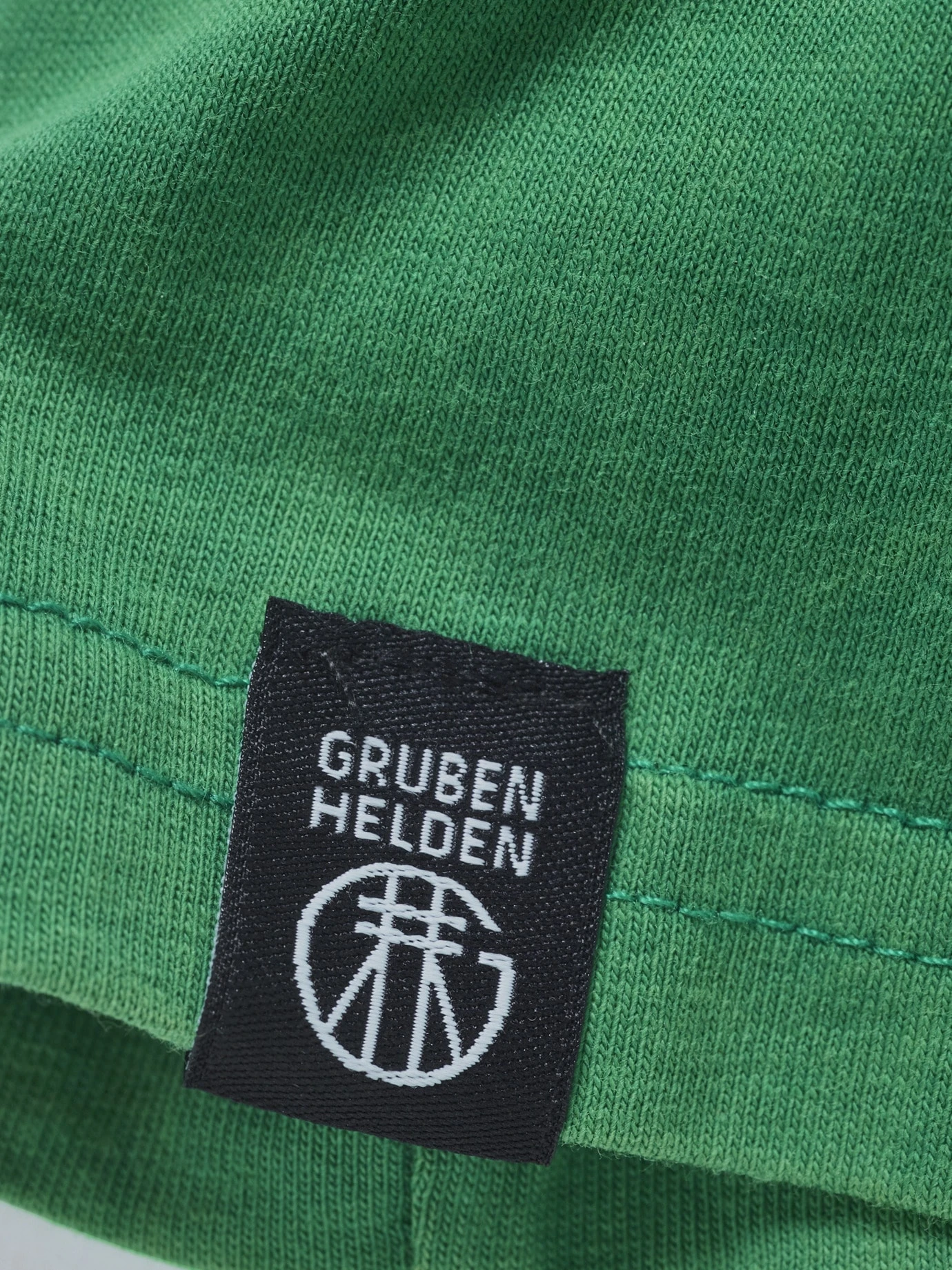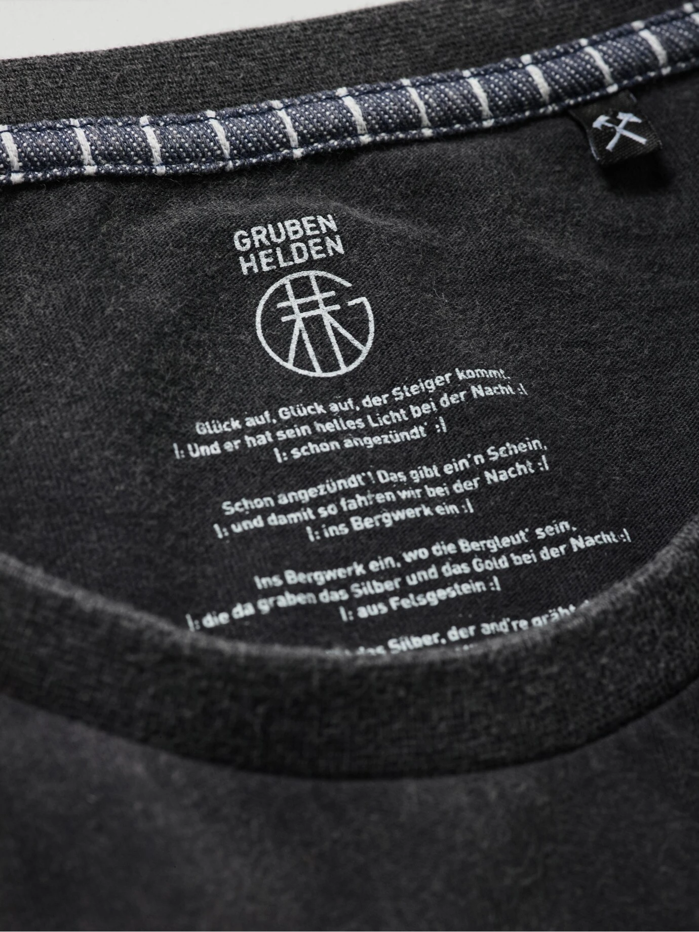 Eine Hommage an die Hoffnung. Zusammenhalten, füreinander einstehen, niemals aufgeben – die Werte aus dem Pott sind aktueller denn je. Die GRUBENHELDEN erinnern mit diesem Shirt daran. Auf der Brust trägt es eine Strophe des Steigerliedes, das Necktape im Ausschnitt ist zusätzlich mit echtem Bergkittelstoff ausgestattet. Die moderne Glückauf-Botschaft unterstreicht dann der feste portugiesische Baumwolljersey.