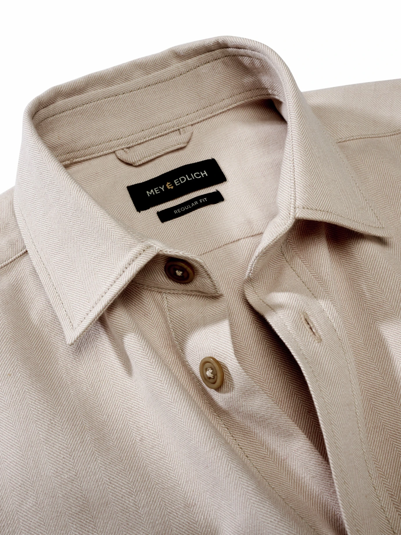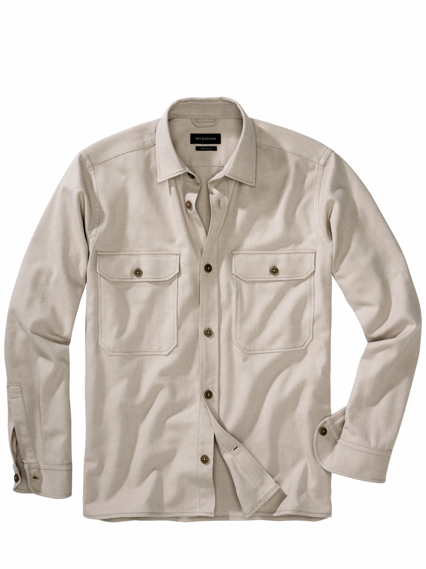 Ein Hemd, das beinahe so viel kann wie ein Schweizer Messer. Overshirts sind Allzweck-Tools. Sie retten Tage, an denen man sonstwas zwischen Hemd und Jacke braucht, weil sie beides sind. Mit zweifarbigem Herringbone-Gewebe ist dieses sogar stadtfein, was Ihr Repertoire nicht nur um die Stoffhose erweitern könnte. Dazu kommt der neue Funktionsumfang mit den beiden übertrieben tragfähigen Brusttaschen für Phone, Brillenetui, Papiere, Plastik und womit Sie sonst Ihre Hosentaschen entlasten möchten. Egal was Sie vorhaben: es klappt!