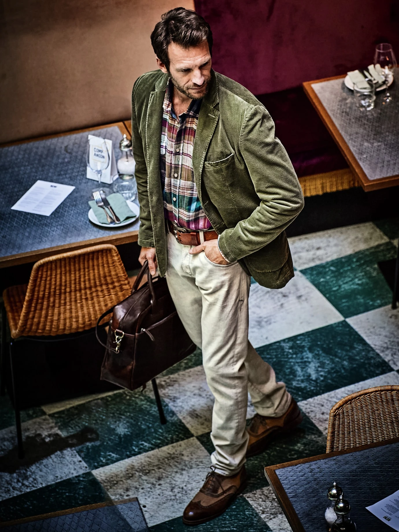 Material: 97 % Baumwolle, 3 % Elasthan. Maschinenwäsche. Leicht bügeln.