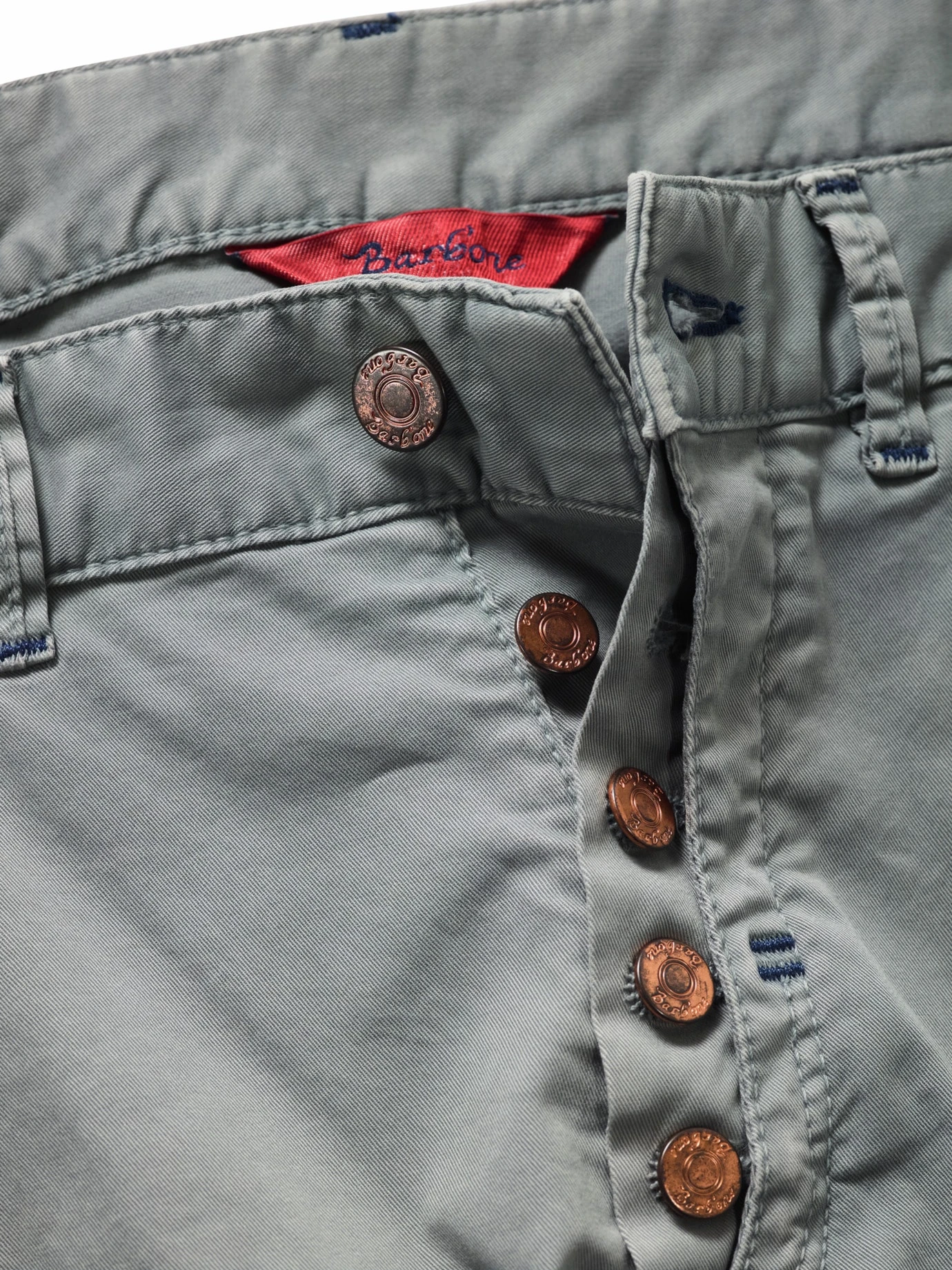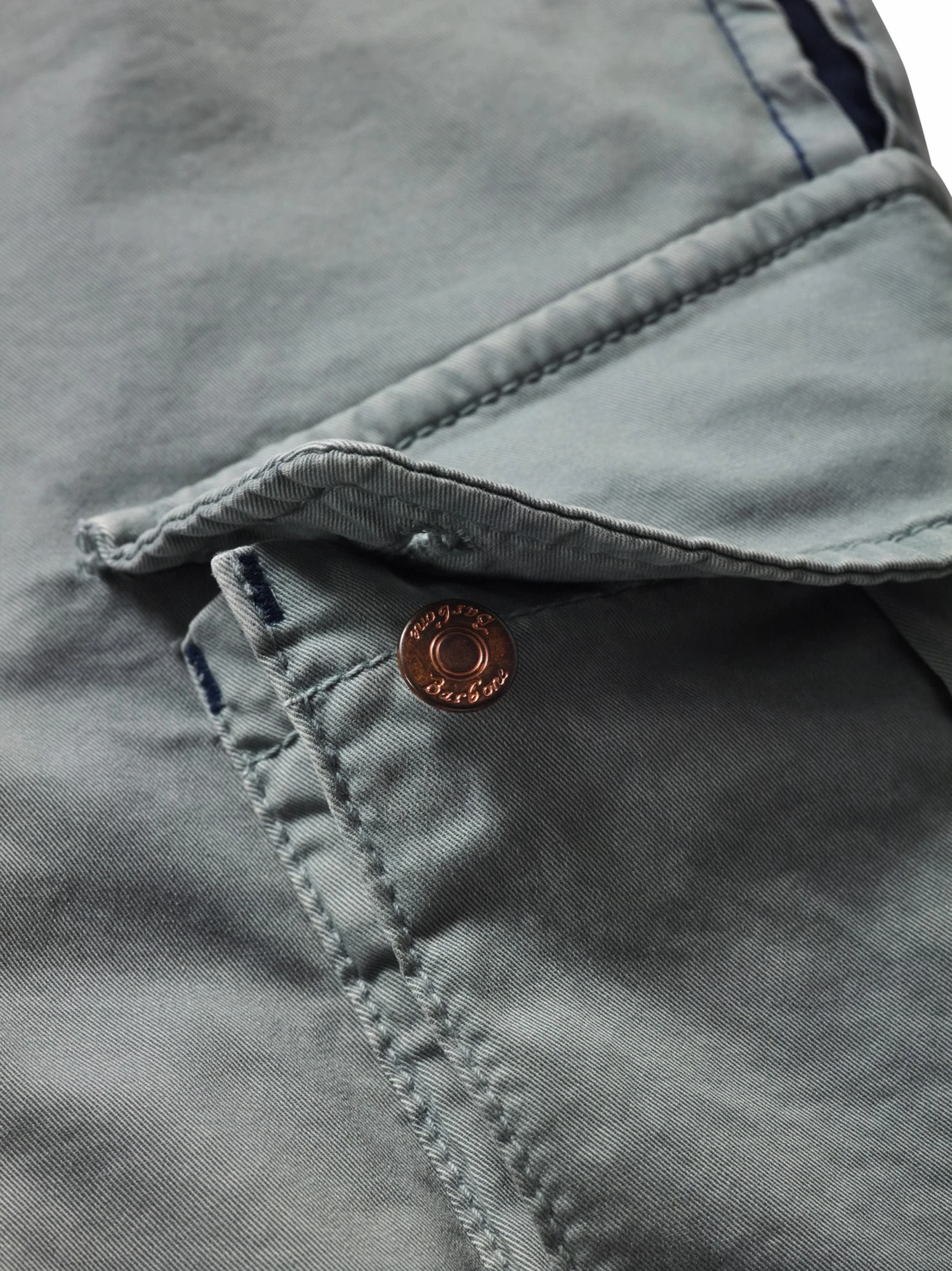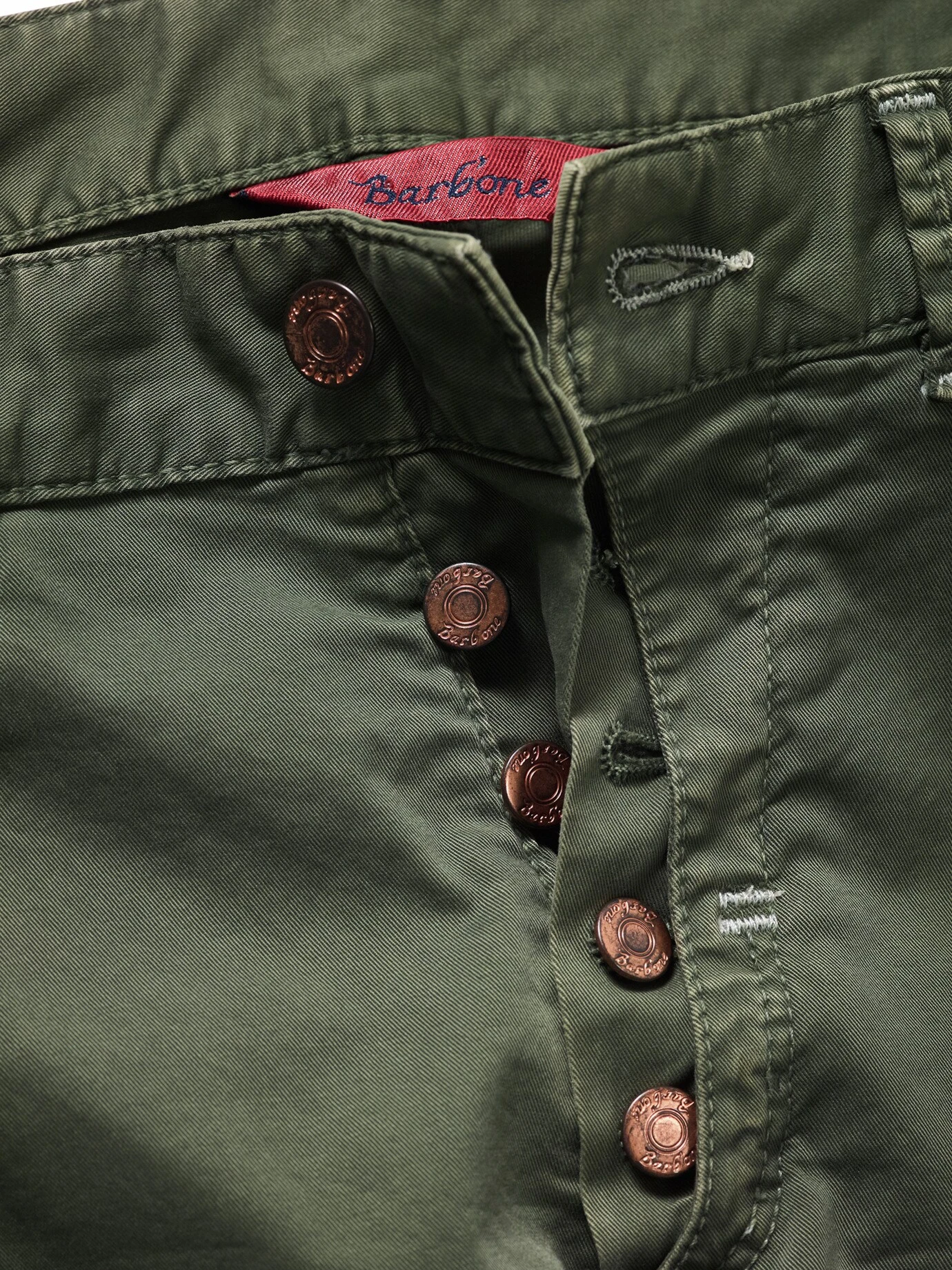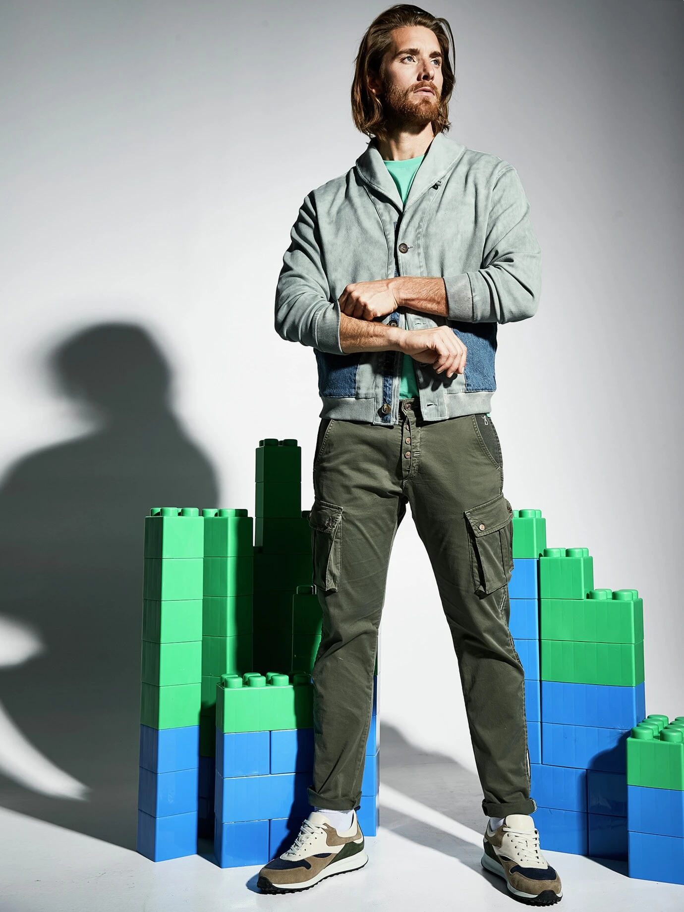 Von einem, der es faustdick hinter den Ohren hat. Valentino de Luca hat die Hosenwelt umgekrempelt. Weil er Hosennähte nach außen stülpt und damit die penible Arbeit des Hosenschneiders zur Schau stellt. Typisches Merkmal: die fetten Metallknöpfe, in männeraffiner Höhe sind die Cargotaschen auf Mitte des Oberschenkels angebracht. Ansonsten gearbeitet, wie Sie es gewohnt sind: dichter Baumwolltwill, der gut nachgibt.