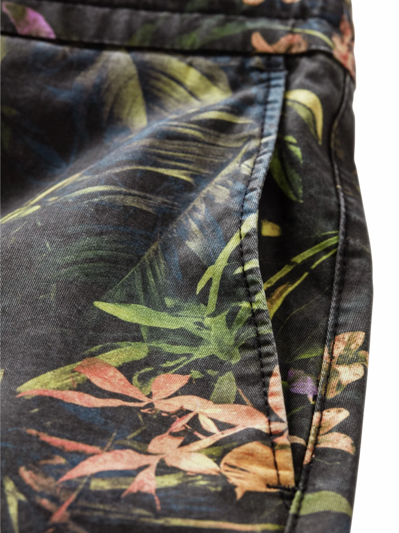 Mit der Souveränität einer guten Sommershorts und der Lässigkeit einer Badeshose. Gemacht aus stabiler Baumwolle und einem Schuss Elasthan für die Bequemlichkeit. Dazu der flexible Bund und ein fast schon fluoreszierender Druck – diese Shorts sind ein wahres, optisches Highlight. Sehr angezogen mit schwarzem oder weißem Leinenhemd.